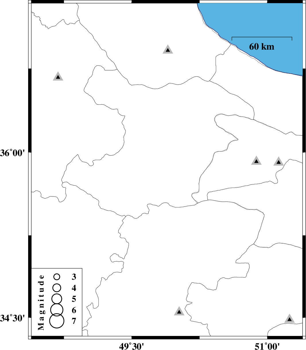 | 2009/05/05 | 18:47:49.9 | 23:17:49.9 | 35.83 | 49.89 | 46 | ML:2.5 | 17 km West of Buinzara, Ghazvin Province |