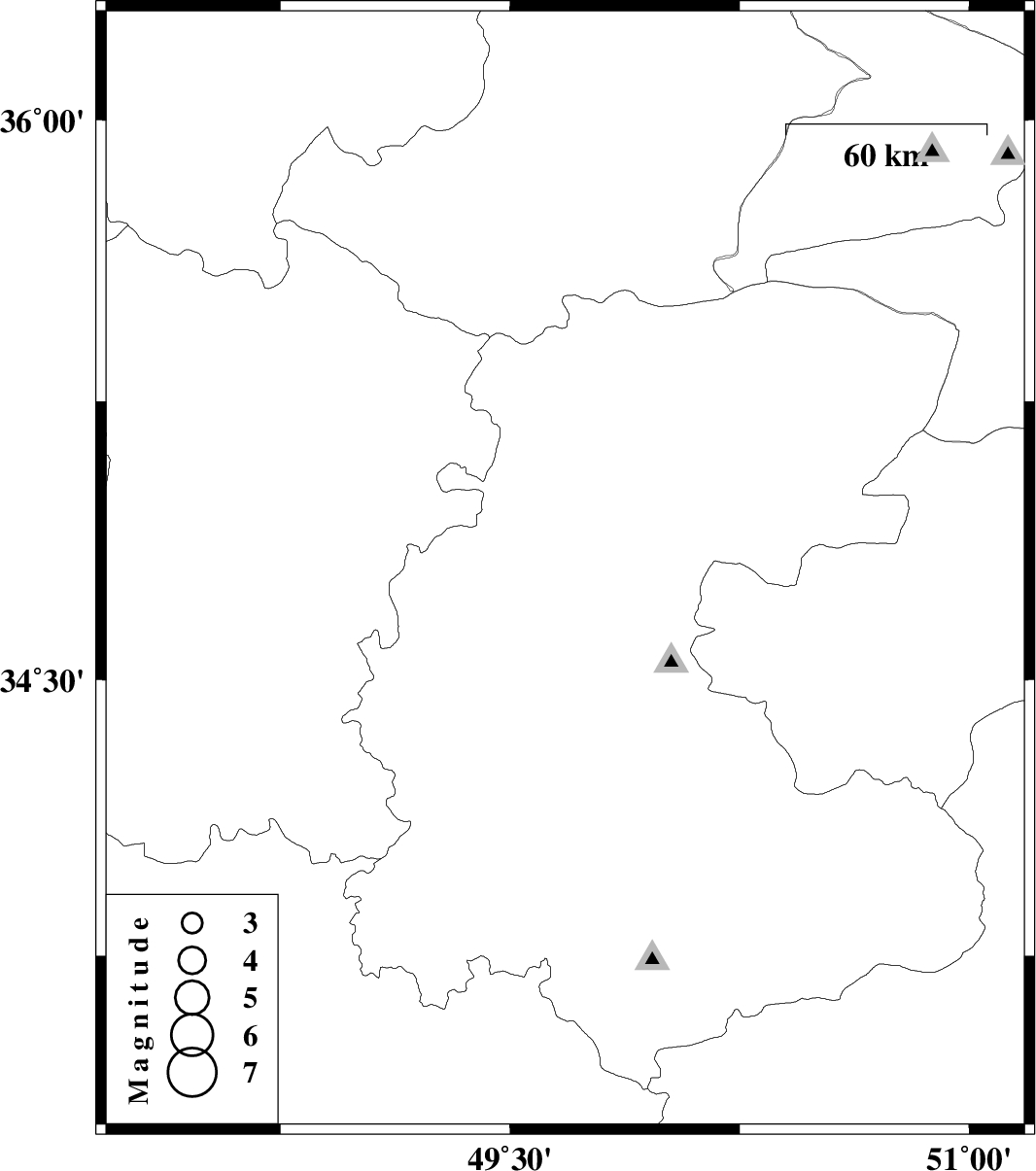 | 2009/05/15 | 03:08:11.6 | 07:38:11.6 | 34.79 | 49.68 | 46 | ML:2.8 | 33 km West of Tafresh, Markazi Province |