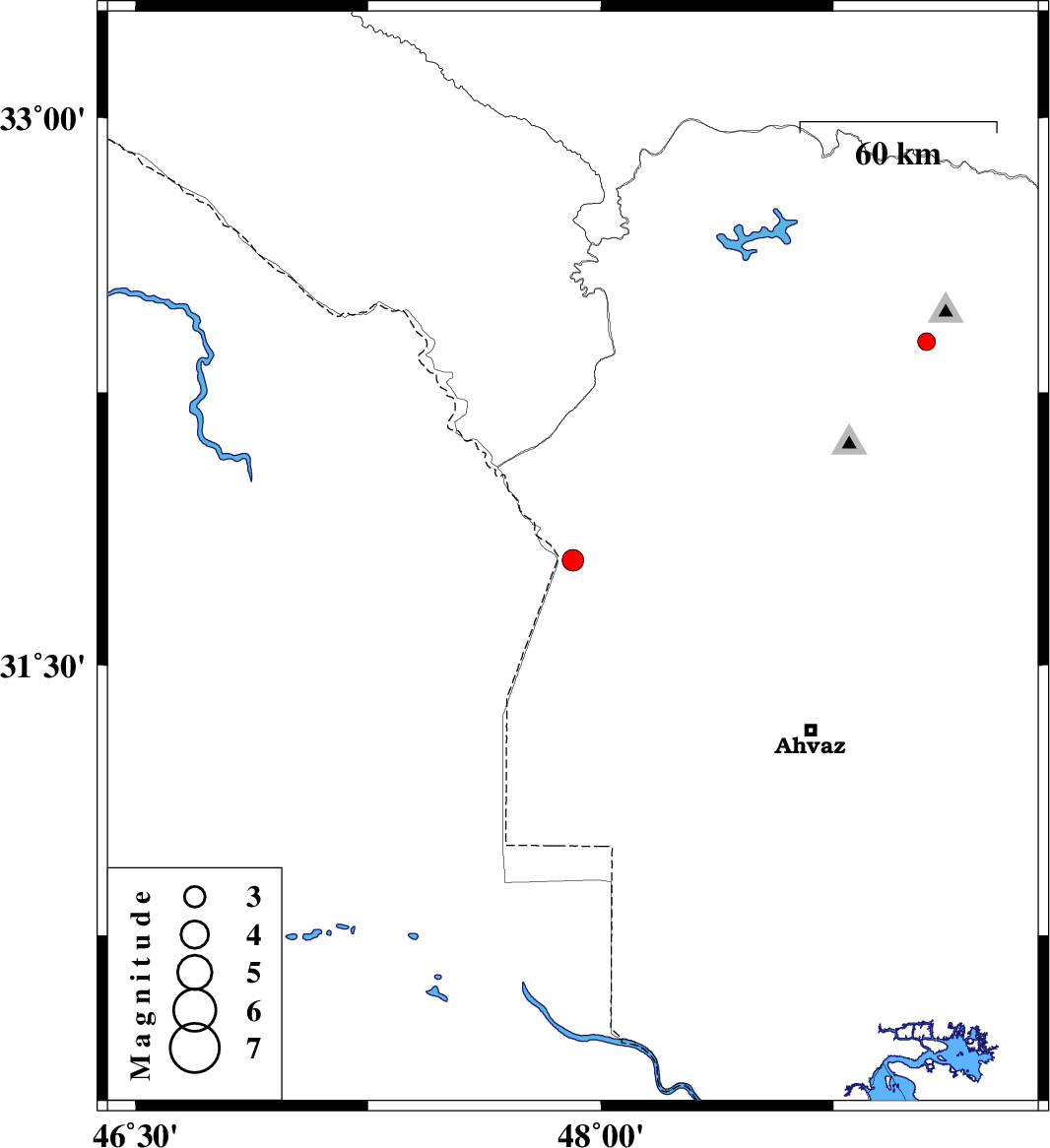 | 2009/05/16 | 11:37:56.4 | 16:07:56.4 | 31.79 | 47.91 | 8 | ML:3.1 | 36 km North-West of Susangerd, Khoozestan Province | ||