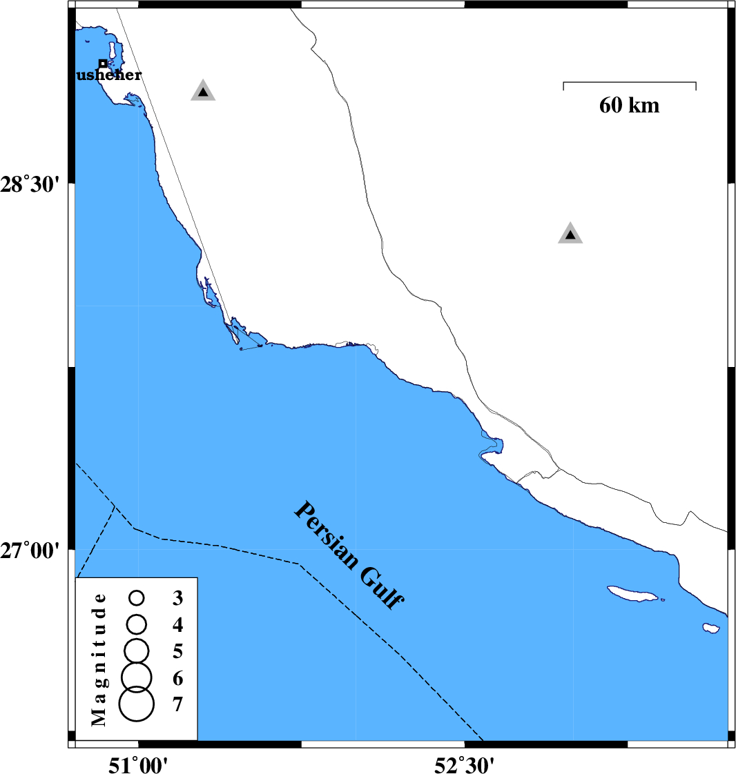 | 2009/05/17 | 01:05:11.2 | 05:35:11.2 | 27.71 | 52.21 | 17 | ML:3.9 | 17 km South-West of Jam, Bushehr Province |
