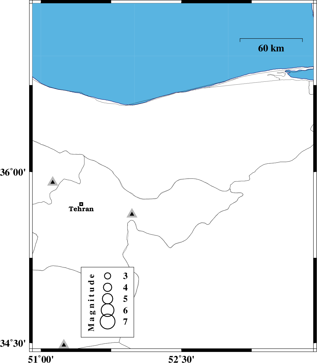 | 2009/05/21 | 17:52:46.0 | 22:22:46.0 | 35.95 | 52.41 | 13 | ML:2.5 | 39 km North-West of Firuzkuh, Tehran Province |