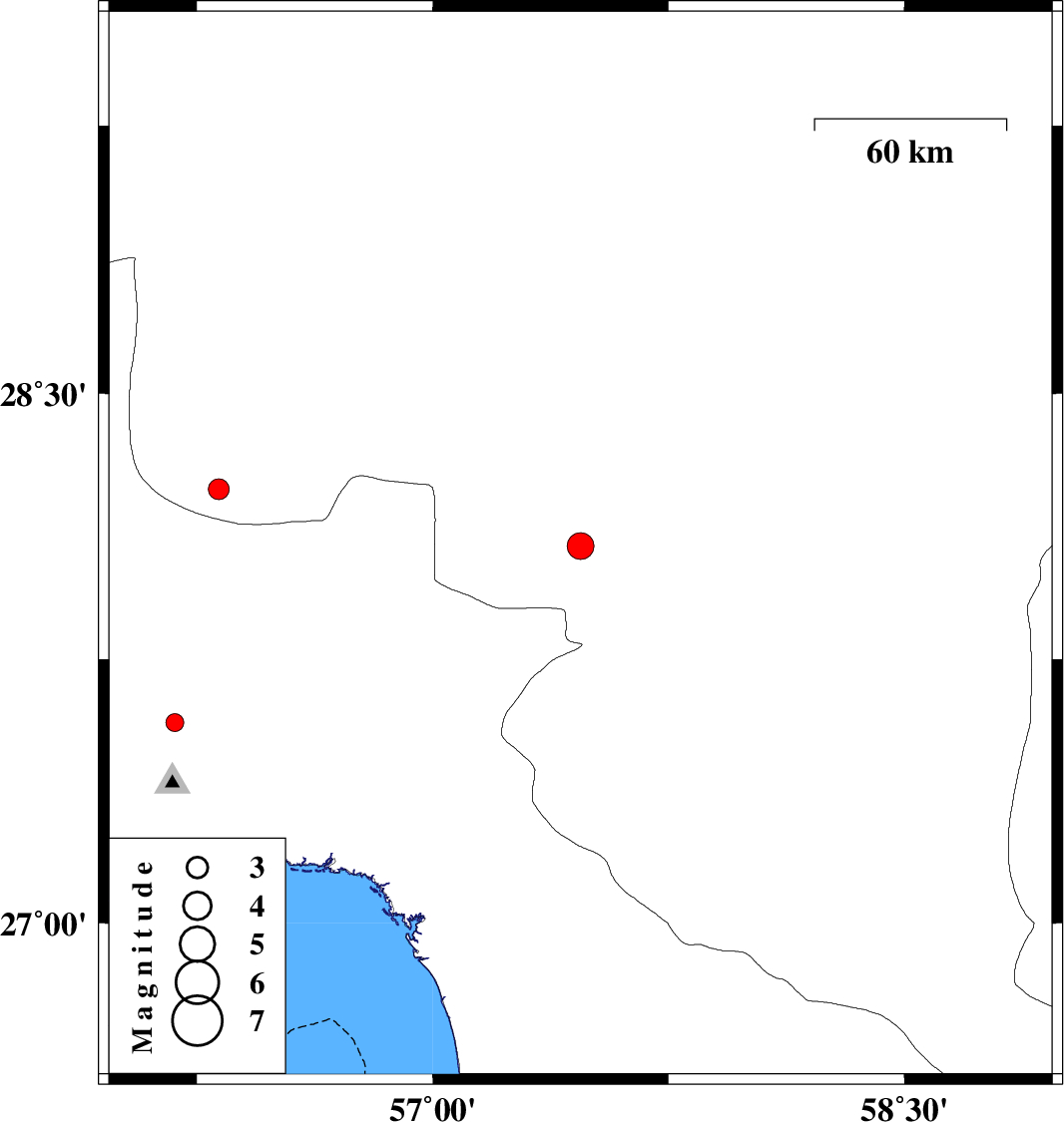 | 2009/05/29 | 16:17:16.0 | 20:47:16.0 | 28.07 | 57.47 | 18 | ML:3.8 | 25 km North-West of Kahnuj, Kerman Province | ||