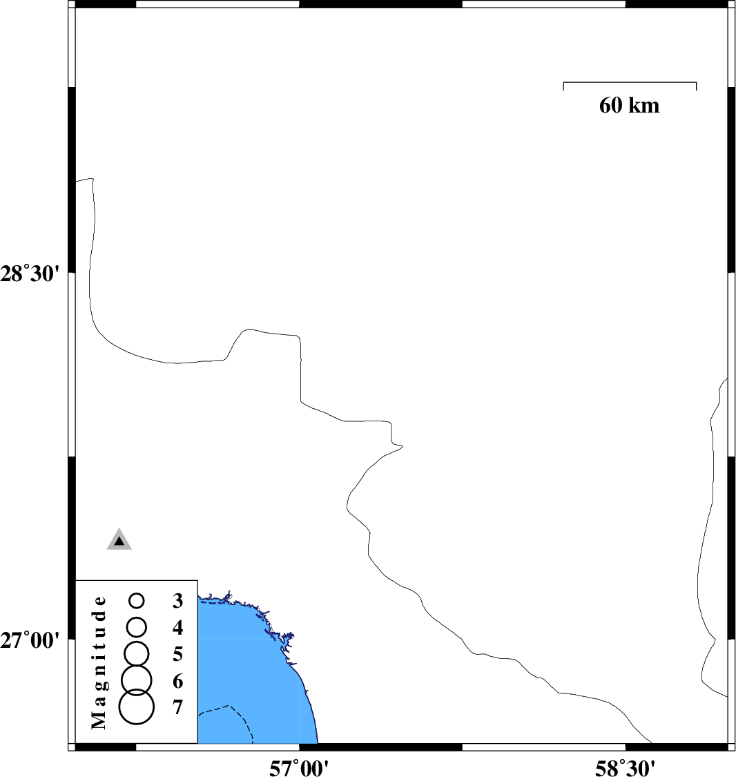 | 2009/05/29 | 16:17:16.0 | 20:47:16.0 | 28.07 | 57.47 | 18 | ML:3.8 | 25 km North-West of Kahnuj, Kerman Province |