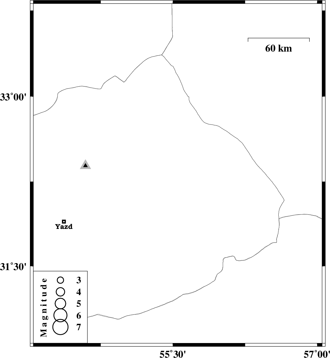 | 2009/06/03 | 08:59:50.5 | 13:29:50.5 | 32.31 | 55.55 | 45 | ML:2.5 | 79 km North-East of Bafq, Yazd Province |