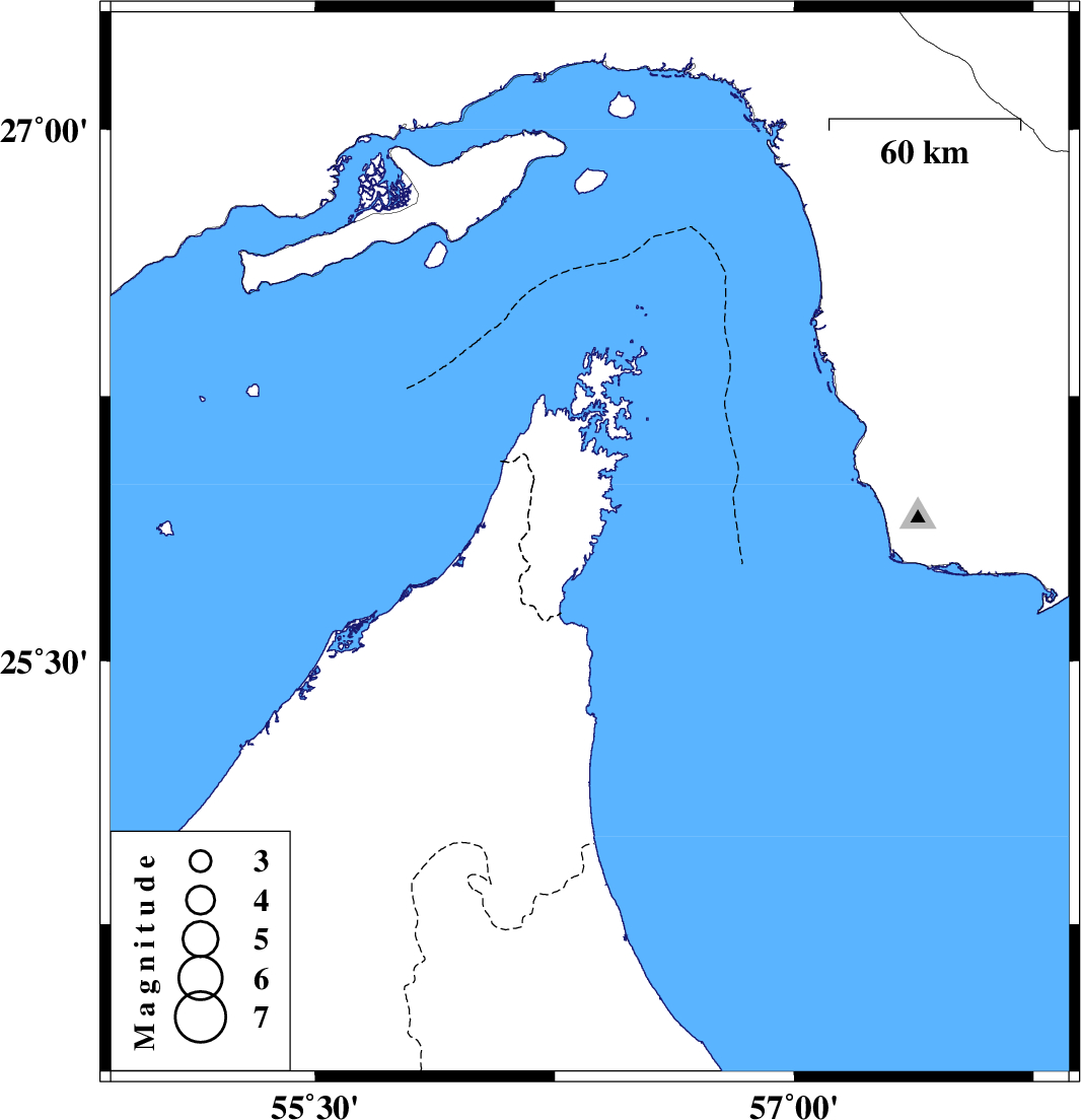 | 2009/06/08 | 18:13:57.6 | 22:43:57.6 | 25.83 | 56.36 | 16 | ML:3.7 | 110 km North-East of Sharjah in United Arab Emirates |