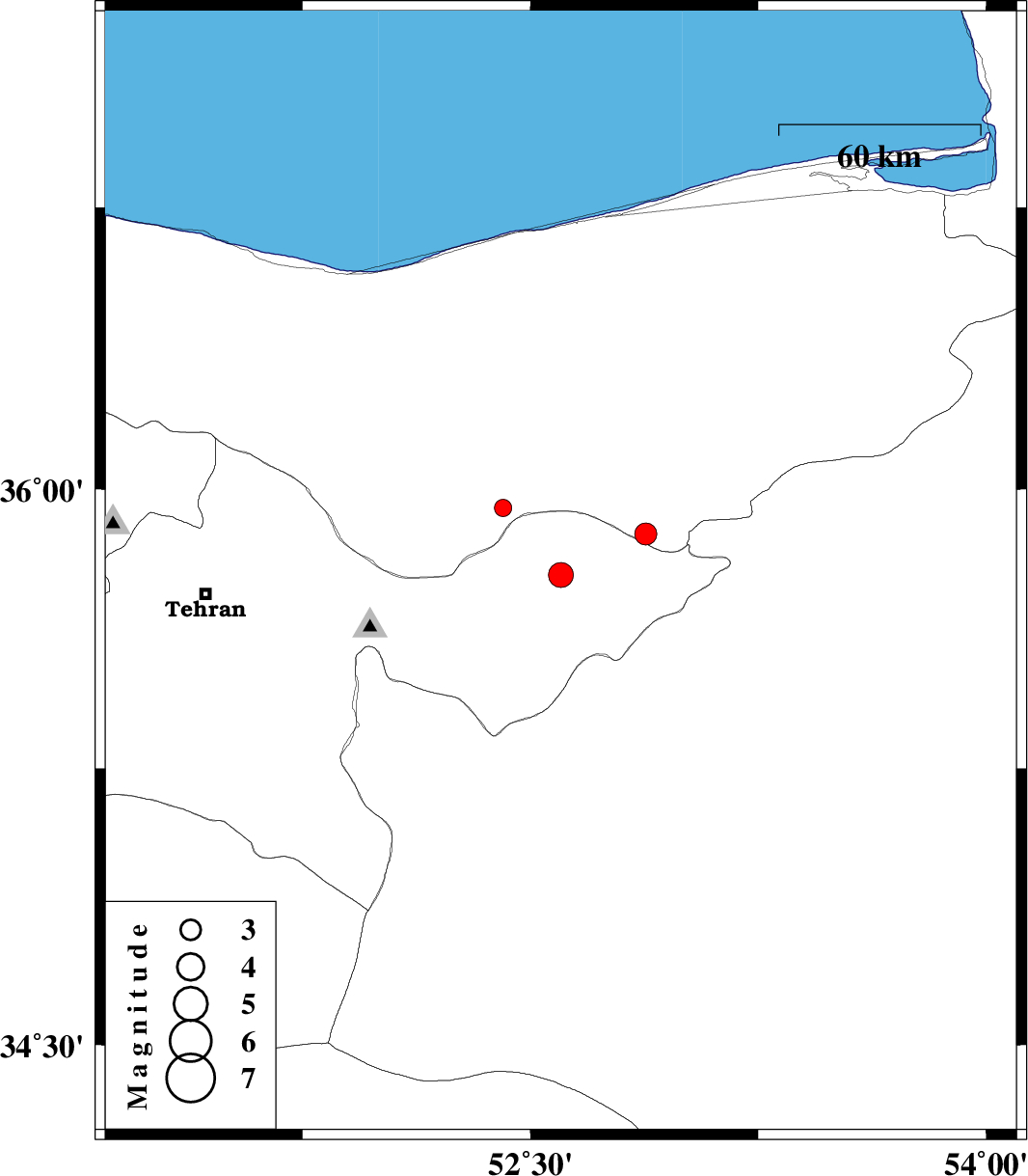 | 2009/06/09 | 22:55:15.1 | 03:25:15.1 | 35.77 | 52.6 | 14 | ML:3.7 | 14 km West of Firuzkuh, Tehran Province | ||