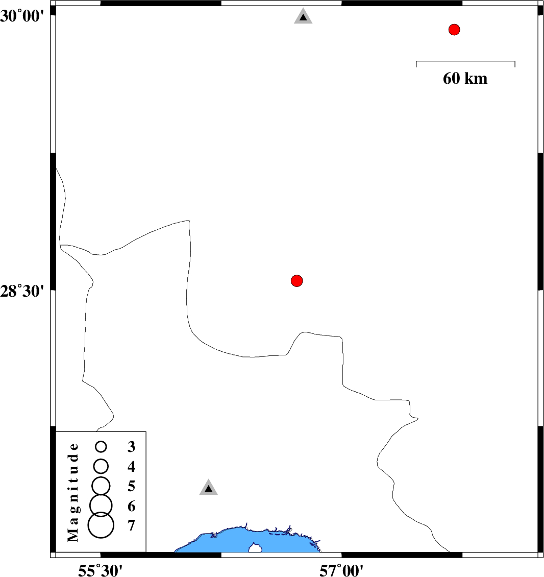 | 2009/06/05 | 13:20:26.5 | 17:50:26.5 | 29.92 | 57.7 | 14 | ML:3.1 | 72 km South-East of Kerman, Kerman Province |