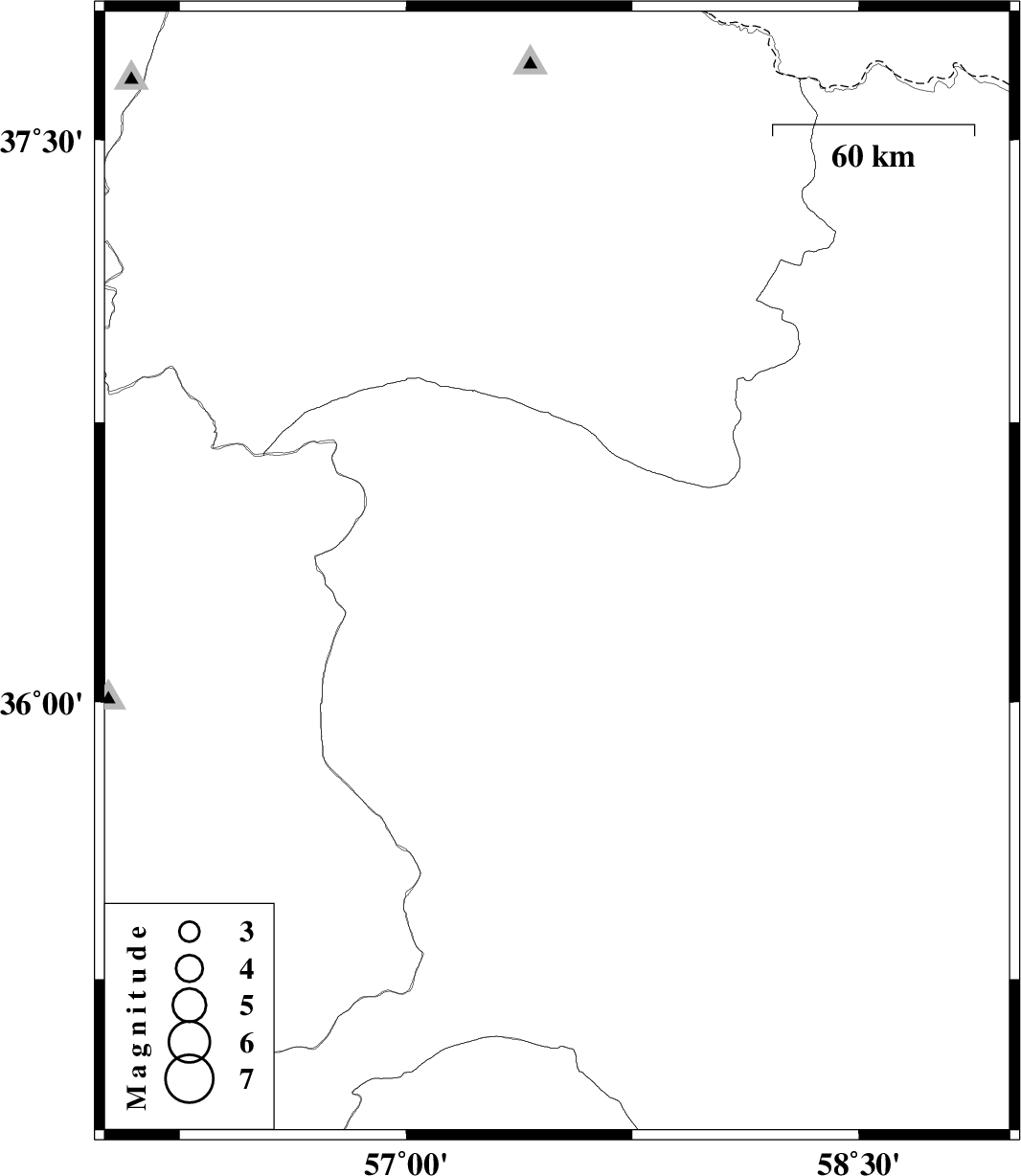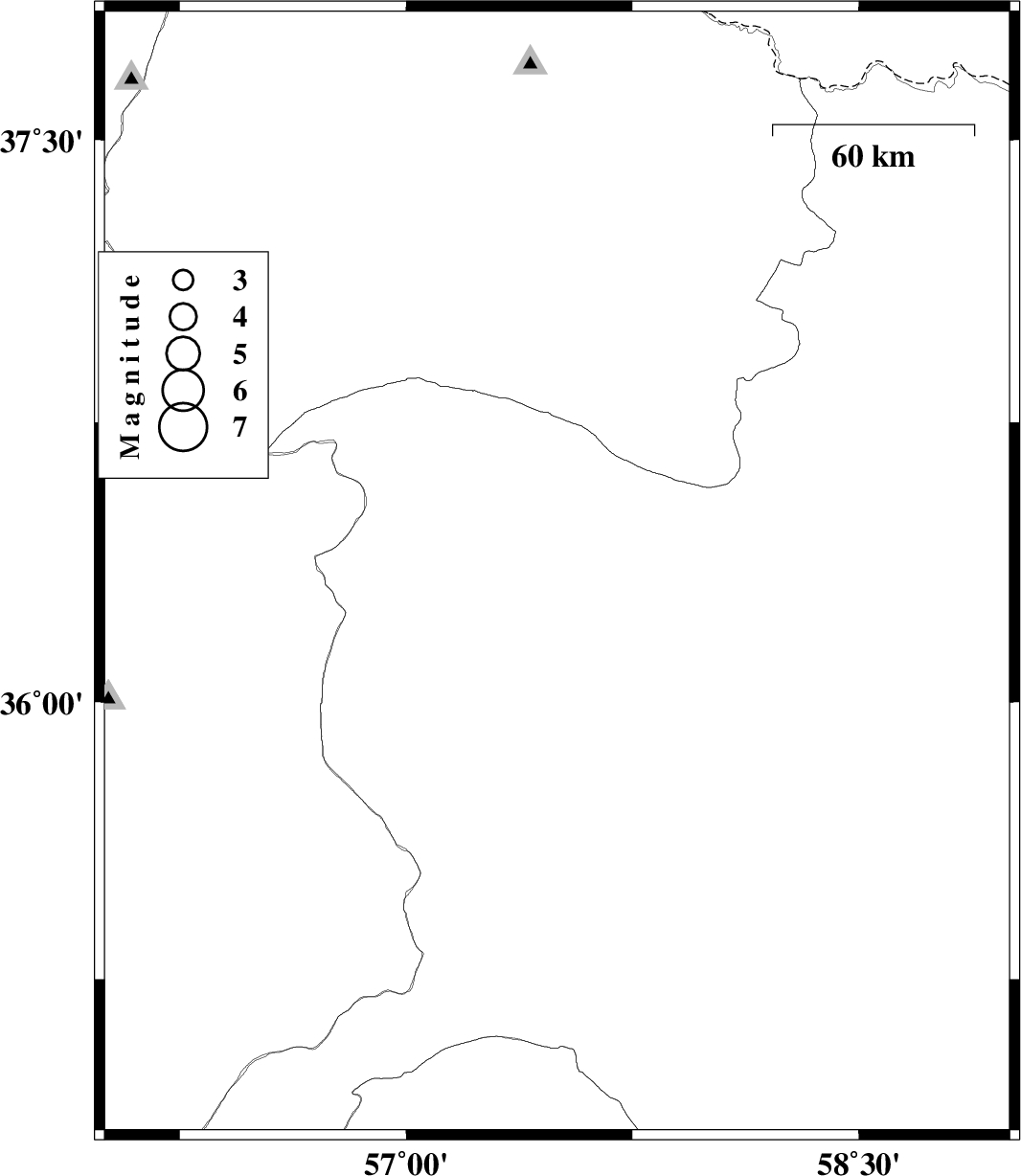| 2009/06/10 | 18:59:52.7 | 23:29:52.7 | 36.34 | 57.5 | 15 | ML:2.7 | 21 km North-West of Sabzevar, Khorasan(center) Province |
