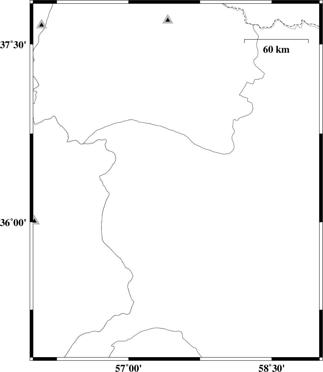 | 2009/06/10 | 18:59:52.7 | 23:29:52.7 | 36.34 | 57.5 | 15 | ML:2.7 | 21 km North-West of Sabzevar, Khorasan(center) Province |