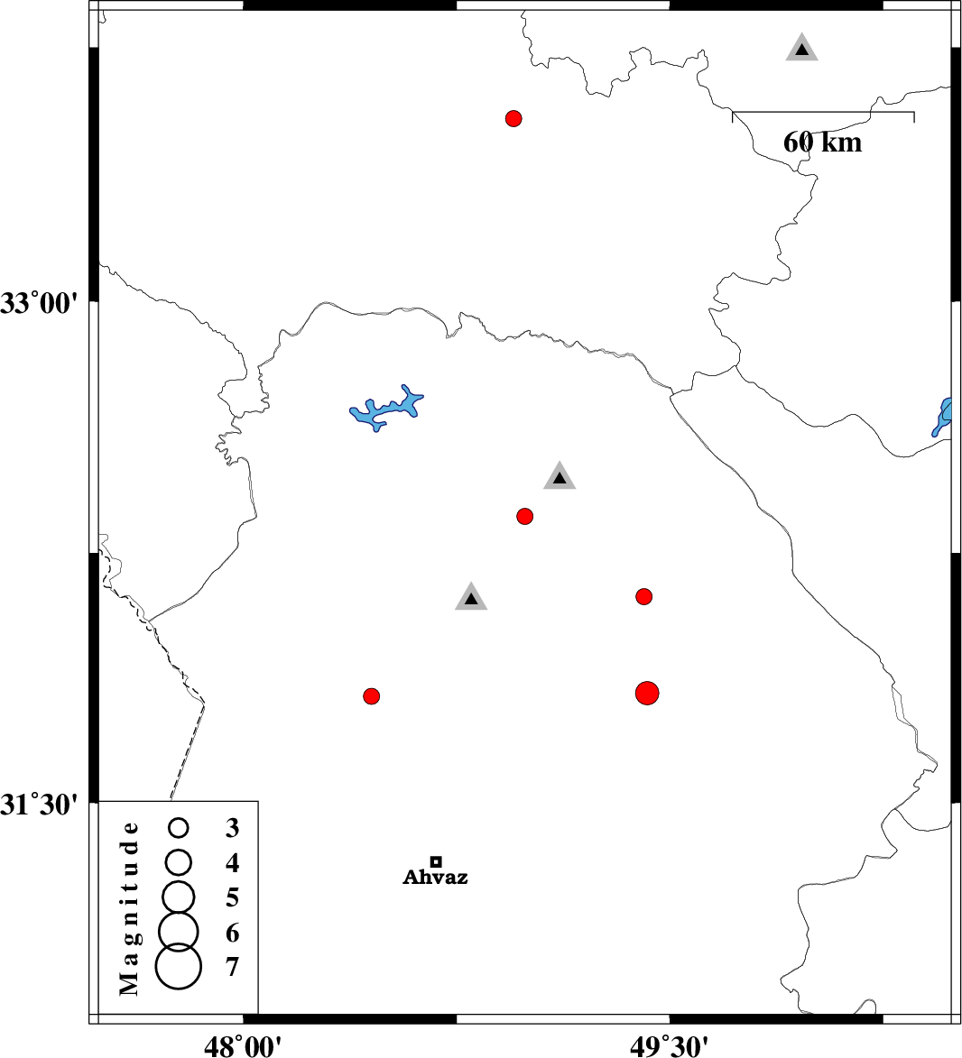 | 2009/06/12 | 04:01:27.8 | 08:31:27.8 | 31.83 | 49.42 | 16 | ML:3.7 | 15 km South-East of Masjed Soleyman, Khoozestan Province |