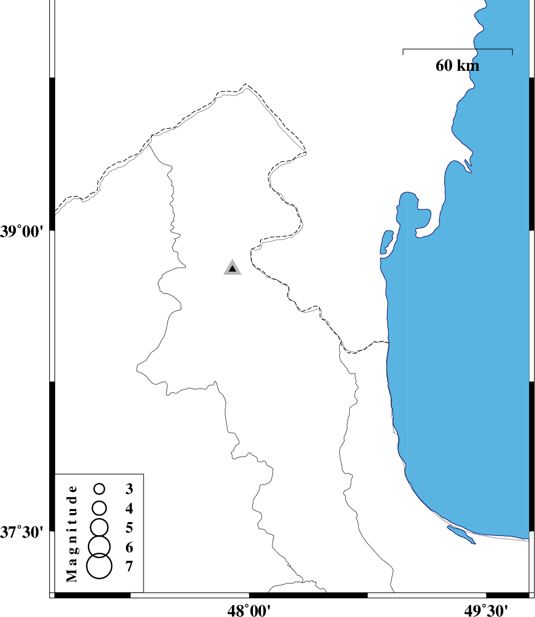 | 2009/06/16 | 16:21:18.6 | 20:51:18.6 | 38.69 | 48.27 | 15 | ML:3.7 | 32 km North-West of Namin, Ardebil Province |