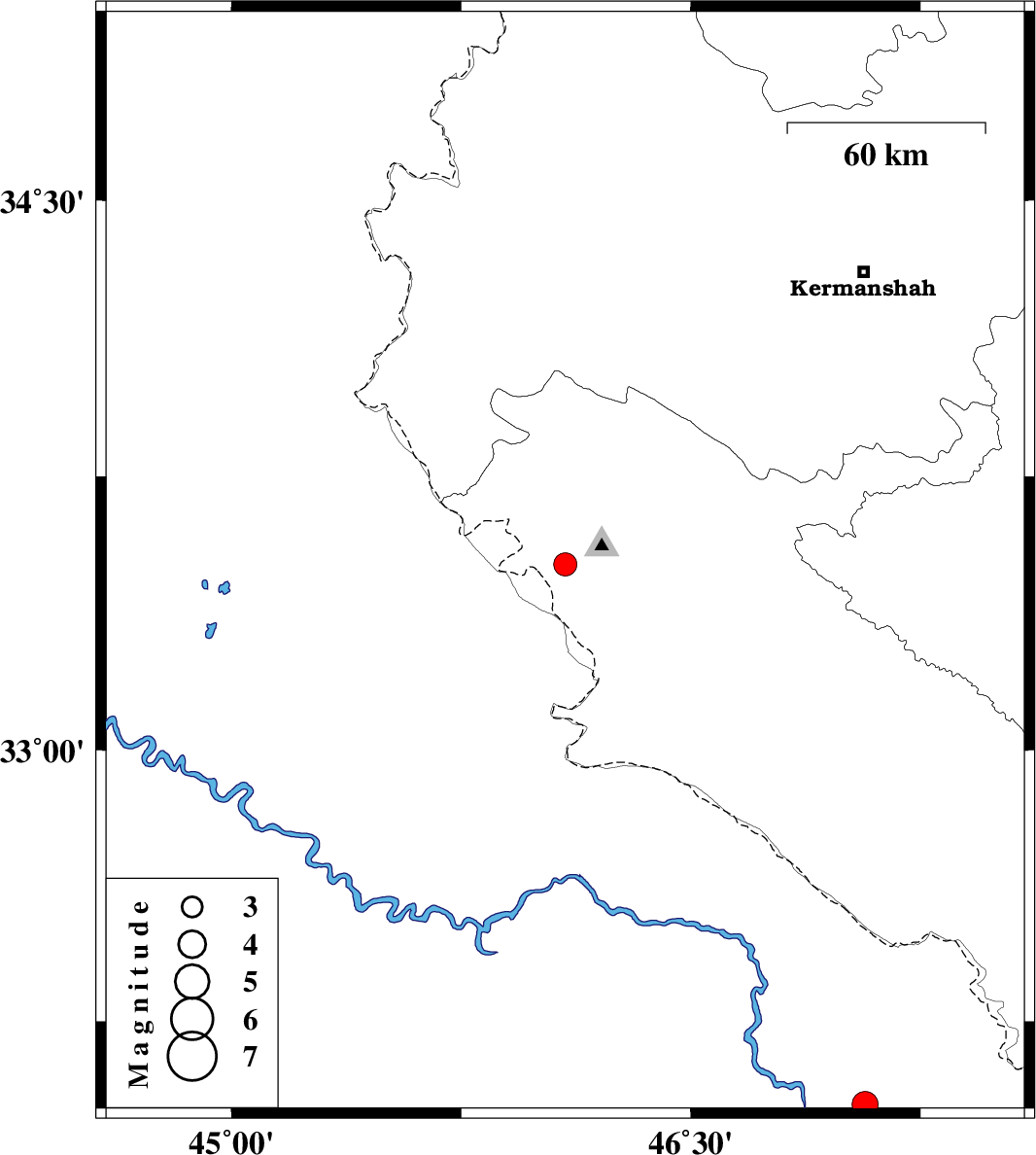 | 2009/06/18 | 12:52:42.2 | 17:22:42.2 | 32.02 | 47.07 | 42 | ML:3.8 | 76 km South-West of Dehloran, Ilam Province | ||