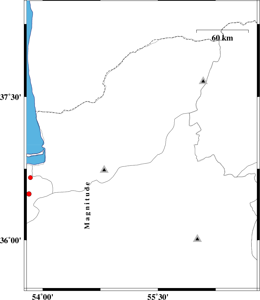 | 2009/05/23 | 08:19:57.9 | 12:49:57.9 | 36.97 | 55.41 | 9 | ML:2.8 | 23 km East of Ramian, Golestan Province |