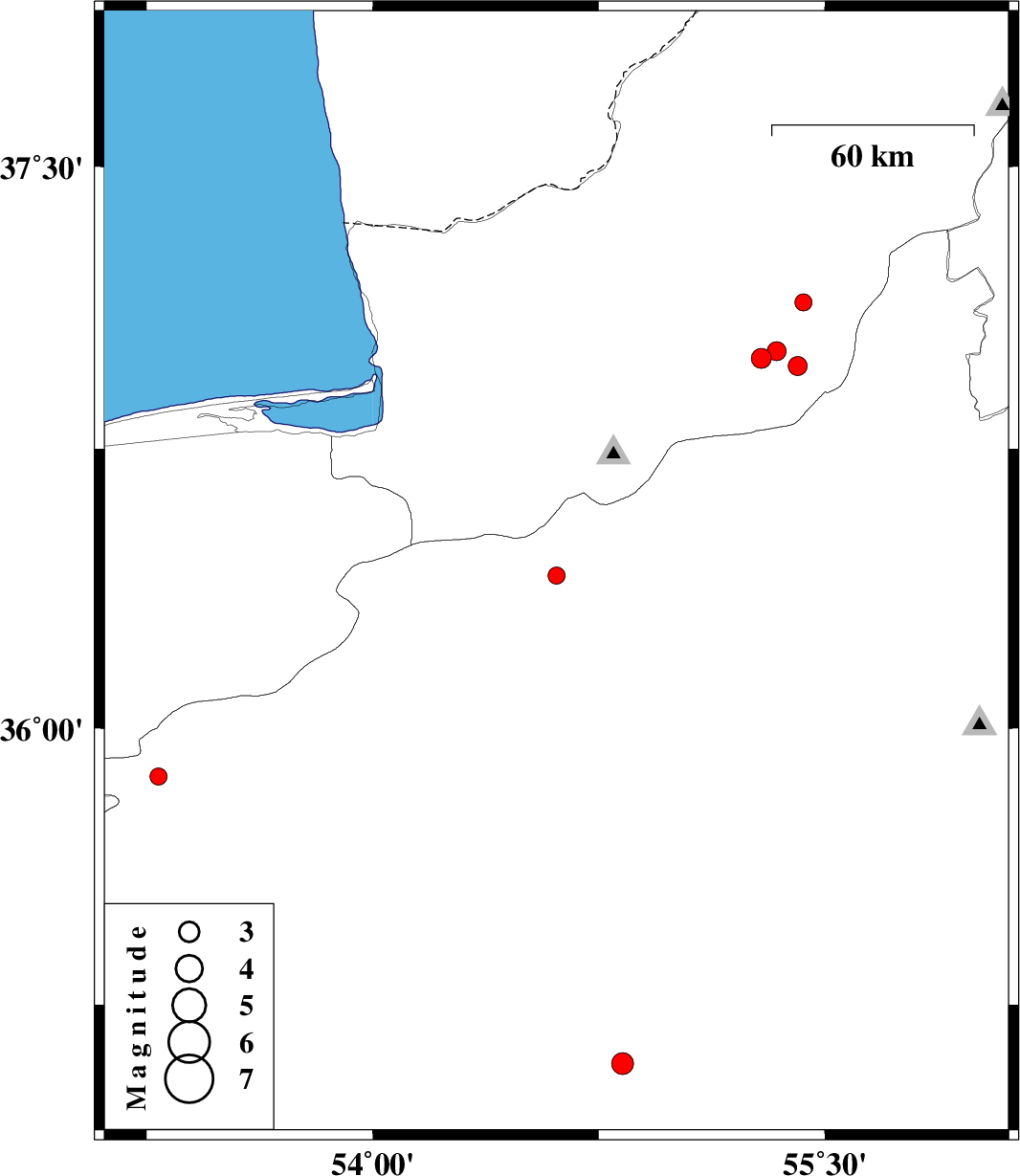 | 2009/05/23 | 08:19:57.9 | 12:49:57.9 | 36.97 | 55.41 | 9 | ML:2.8 | 23 km East of Ramian, Golestan Province |