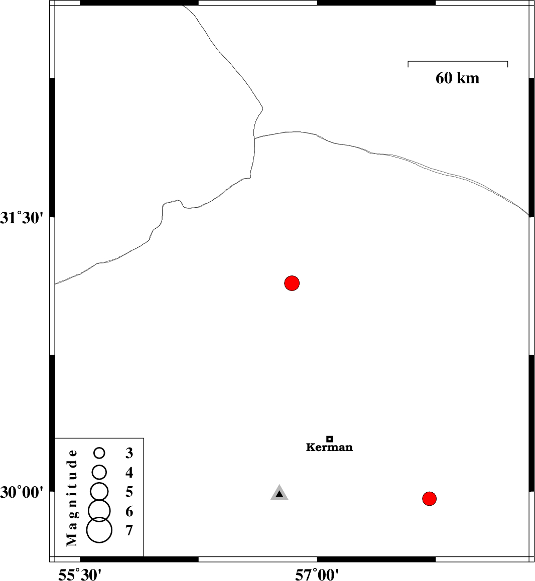 | 2009/06/24 | 20:50:22.0 | 01:20:22.0 | 29.96 | 57.71 | 18 | ML:4 | 70 km South-East of Kerman, Kerman Province |