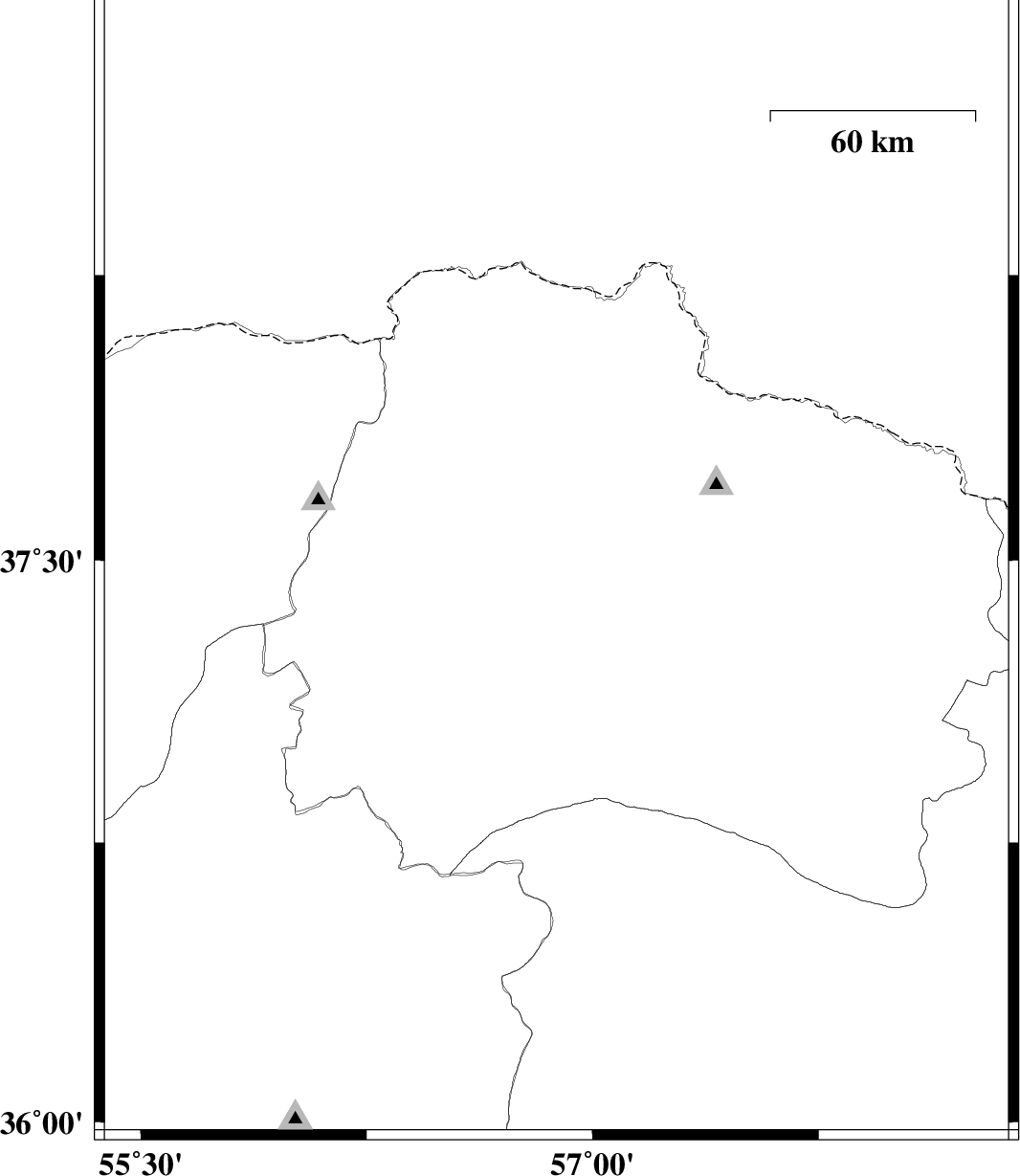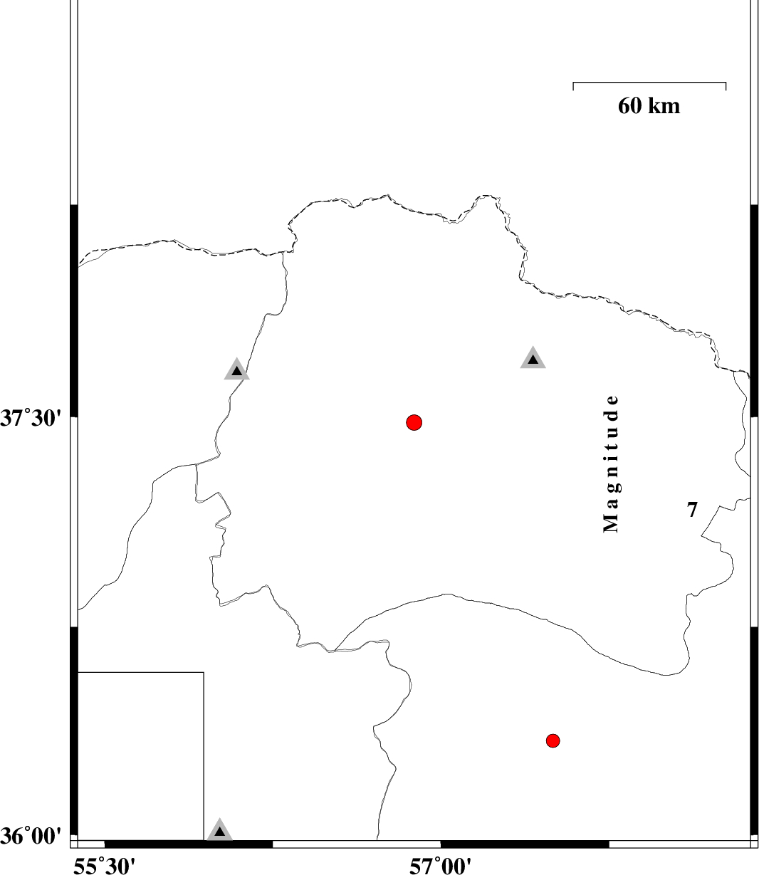 | 2009/06/30 | 10:09:20.3 | 14:39:20.3 | 37.48 | 56.88 | 28 | ML:3.1 | 9 km Ashkhaneh, Khorasan(north) Province | ||