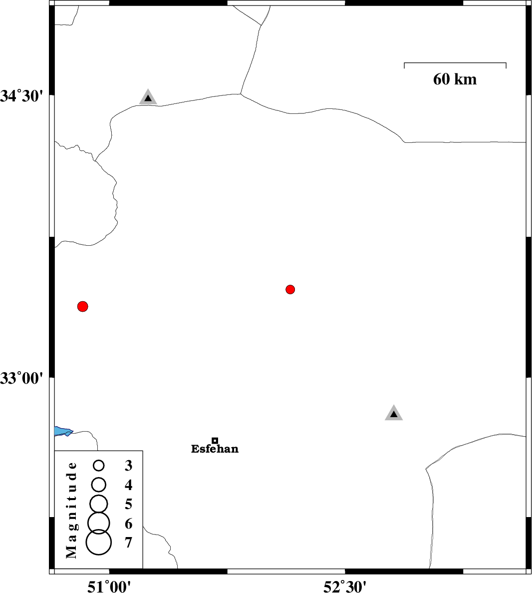 | 2010/01/04 | 00:44:00.4 | 04:14:00.4 | 33.47 | 52.15 | 14 | ML:2.5 | 22 km East of Natanz, Esfahan Province | ||