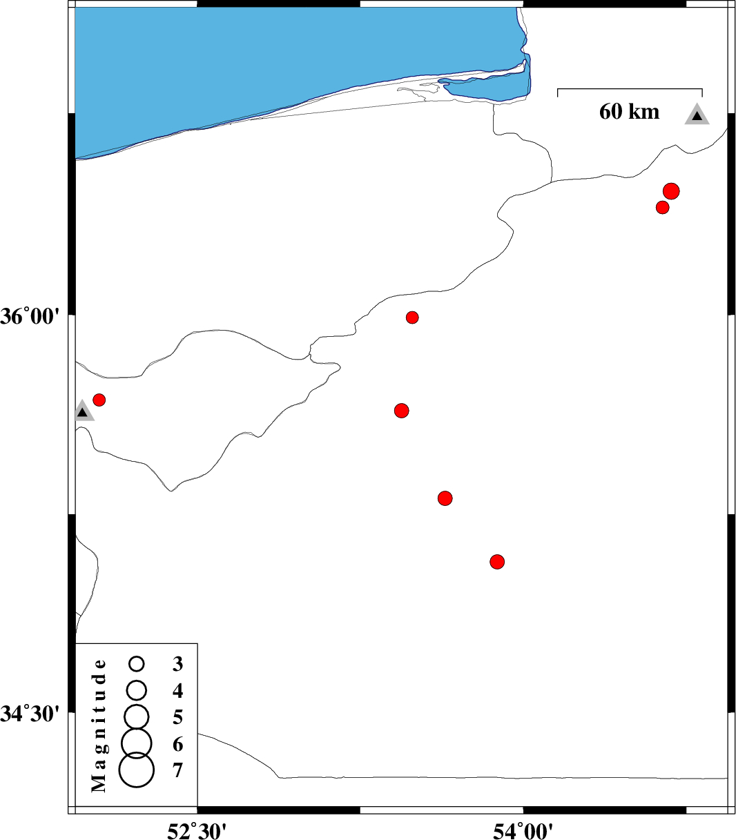 | 2009/12/19 | 04:10:23.8 | 07:40:23.8 | 36.46 | 54.68 | 18 | ML:3.4 | Semnan Province, 26 km West of Shahrud | ||