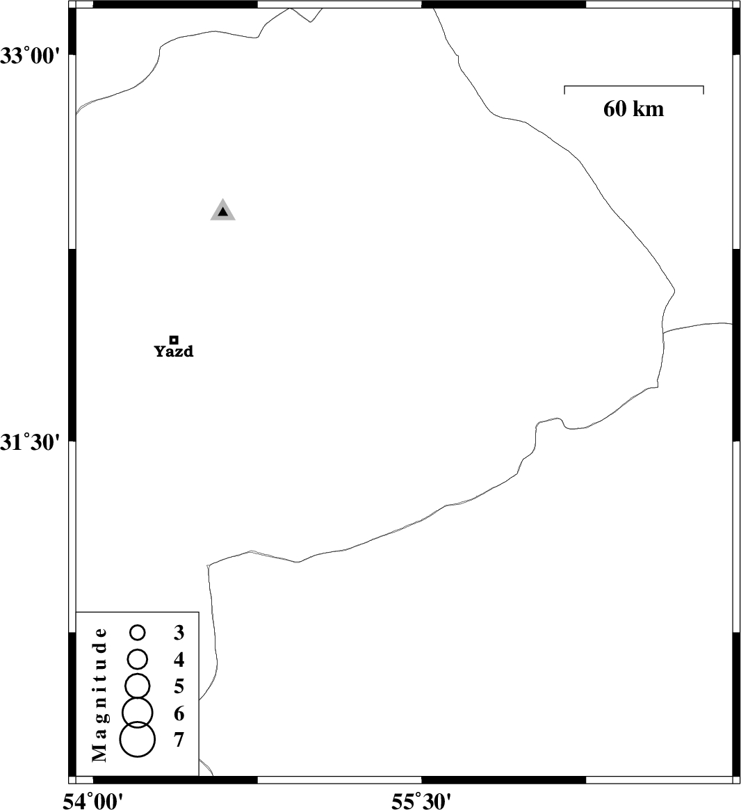 | 2010/01/06 | 10:47:53.5 | 14:17:53.5 | 31.68 | 55.42 | 14 | ML:2.7 | 8 km Bafq, Yazd Province |