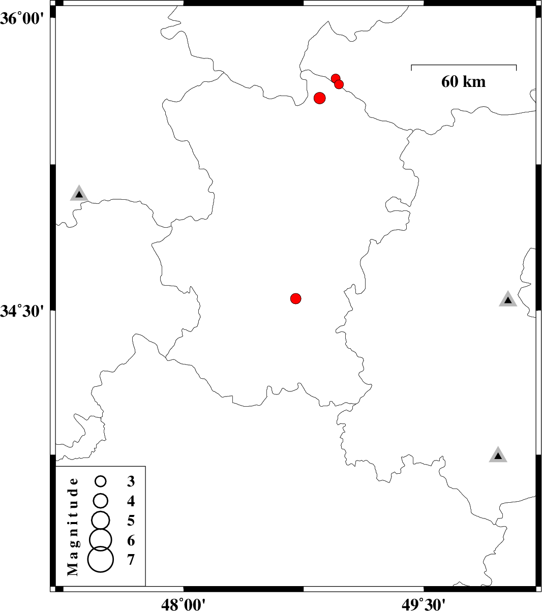 | 2010/01/01 | 21:45:40.2 | 01:15:40.2 | 35.59 | 48.85 | 35 | ML:3.2 | 28 km North-West of Razan, Hamedan Province |