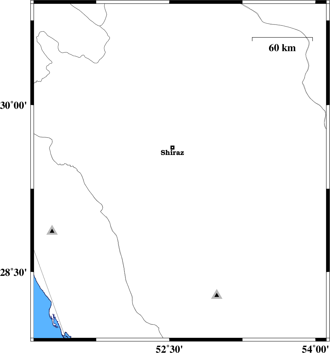 | 2010/01/08 | 02:28:18.5 | 05:58:18.5 | 29.4 | 52.61 | 46 | ML:3 | 25 km South of Shiraz, Fars Province |