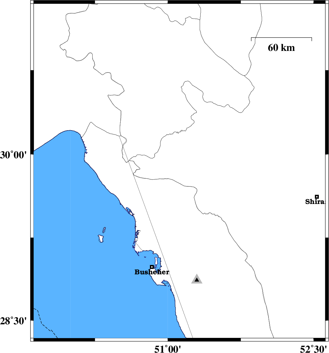 | 2010/01/08 | 02:28:18.5 | 05:58:18.5 | 29.4 | 52.61 | 46 | ML:3 | 25 km South of Shiraz, Fars Province | ||