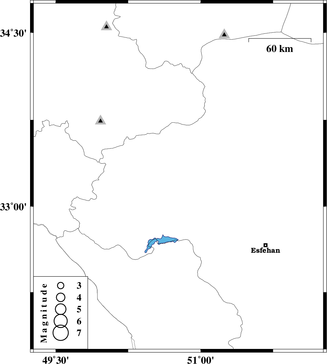 | 2010/01/13 | 20:54:16.1 | 00:24:16.1 | 33.25 | 50.77 | 14 | ML:2.5 | 41 km East of Khvansar, Esfahan Province |