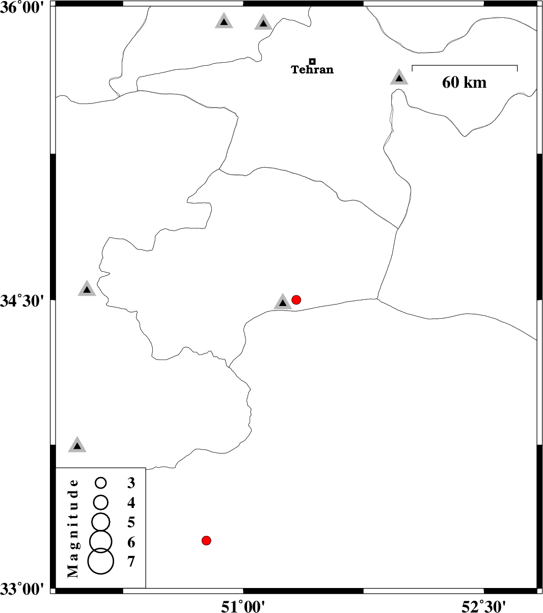 | 2010/01/16 | 05:48:06.5 | 09:18:06.5 | 34.5 | 51.33 | 6 | ML:2.6 | 45 km South-East of Qom, Qom Province | ||