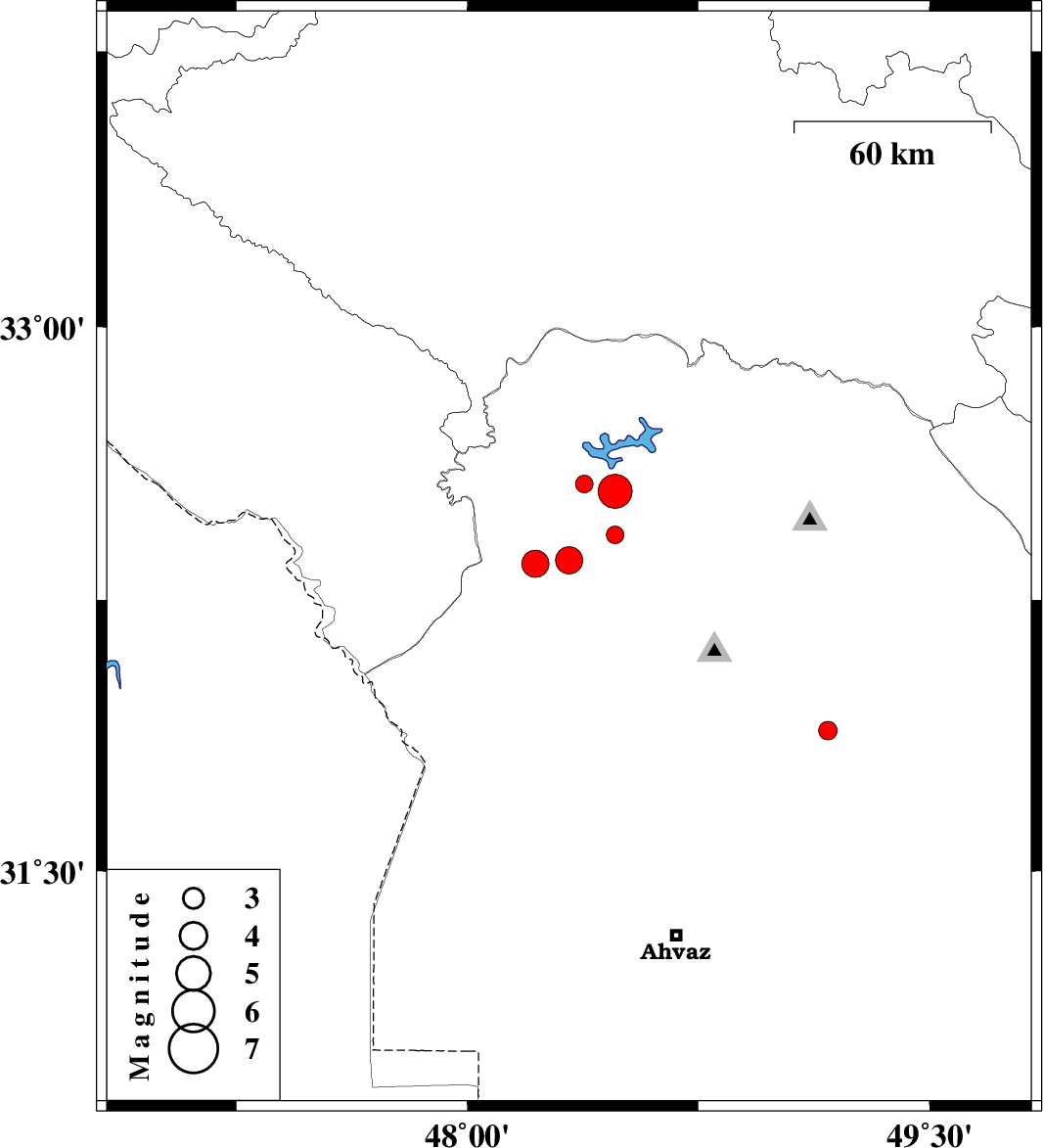 | 2010/01/11 | 01:08:17.0 | 04:38:17.0 | 31.89 | 49.17 | 27 | ML:2.7 | 13 km West of Masjed Soleyman, Khoozestan Province |