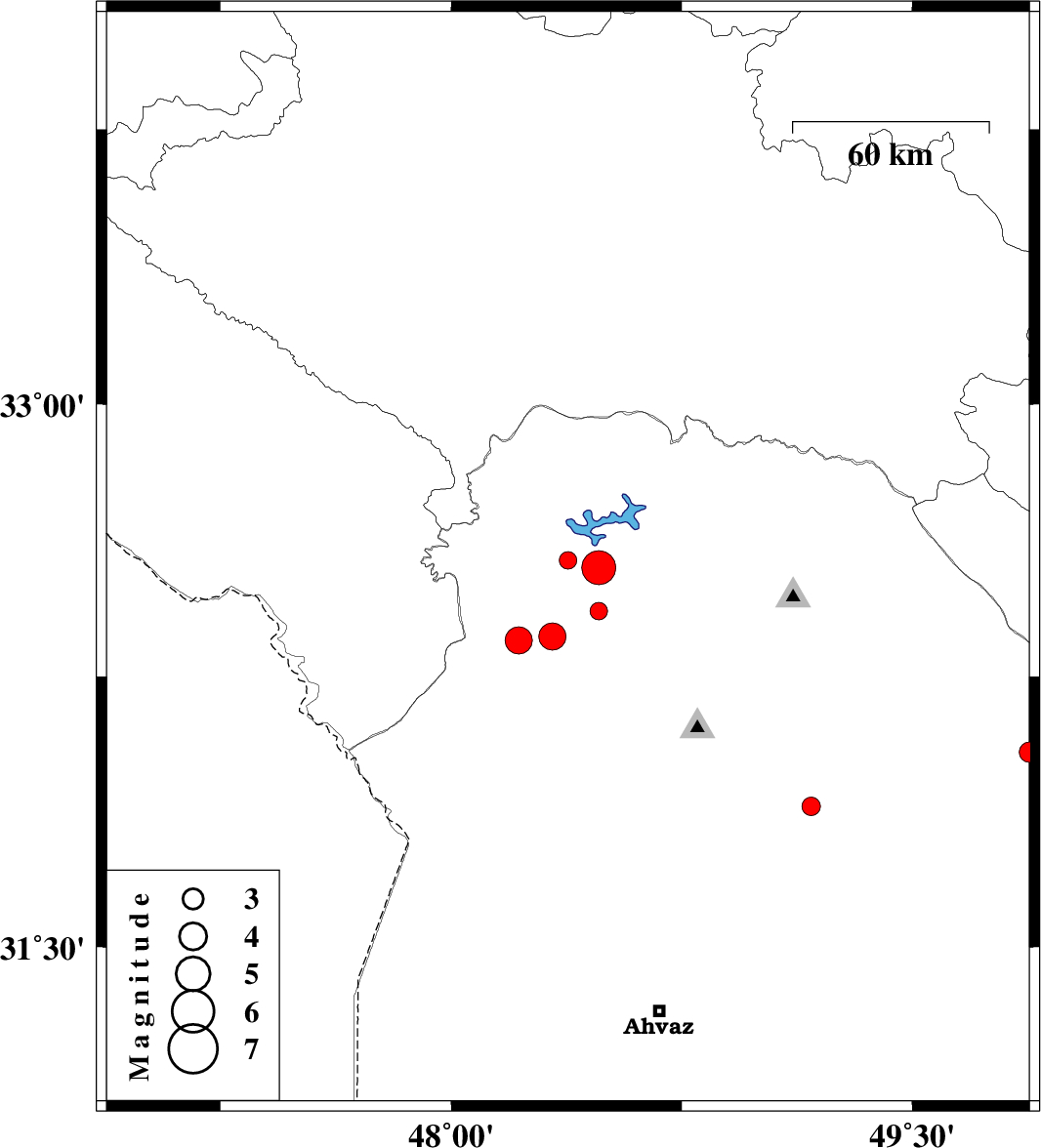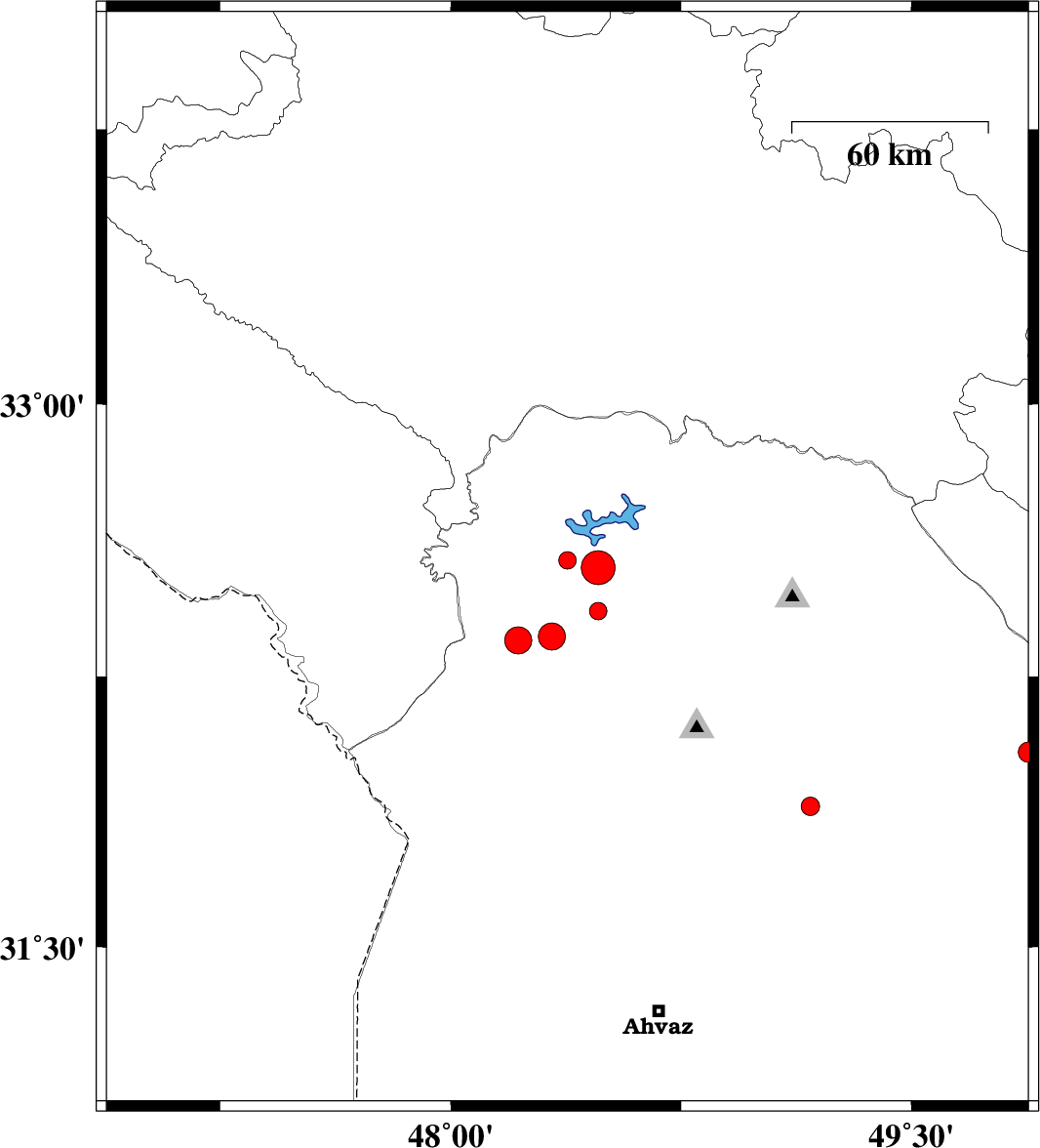 | 2010/01/11 | 01:08:17.0 | 04:38:17.0 | 31.89 | 49.17 | 27 | ML:2.7 | 13 km West of Masjed Soleyman, Khoozestan Province |