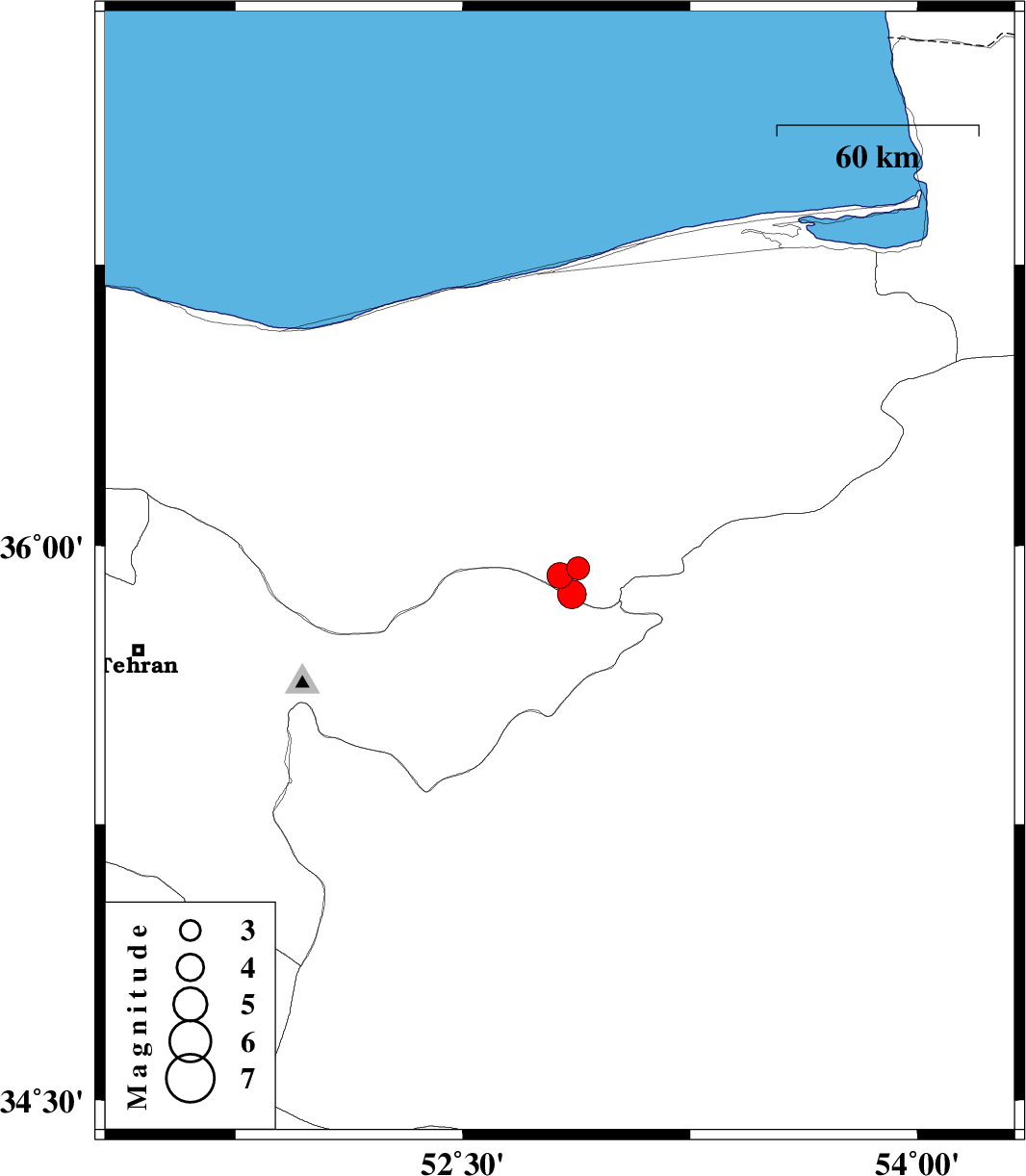 | 2010/01/20 | 05:26:21.8 | 08:56:21.8 | 35.92 | 52.82 | 6 | ML:3.8 | 19 km North of Firuzkuh, Tehran Province | ||