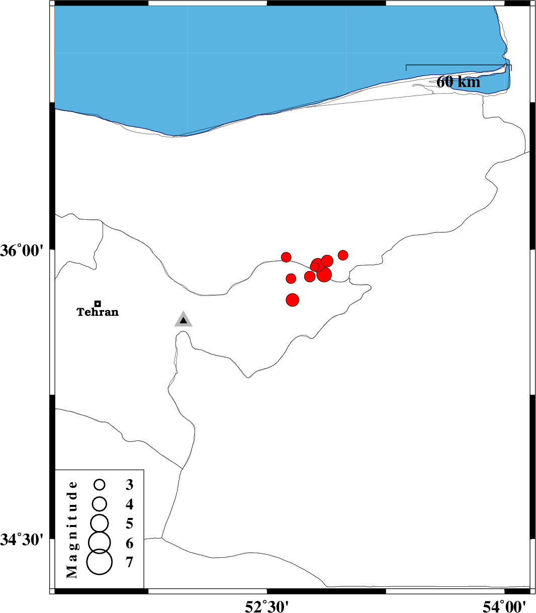 | 2010/01/26 | 01:52:25.7 | 05:22:25.7 | 35.74 | 52.66 | 14 | ML:3.7 | 9 km West of Firuzkuh, Tehran Province | ||