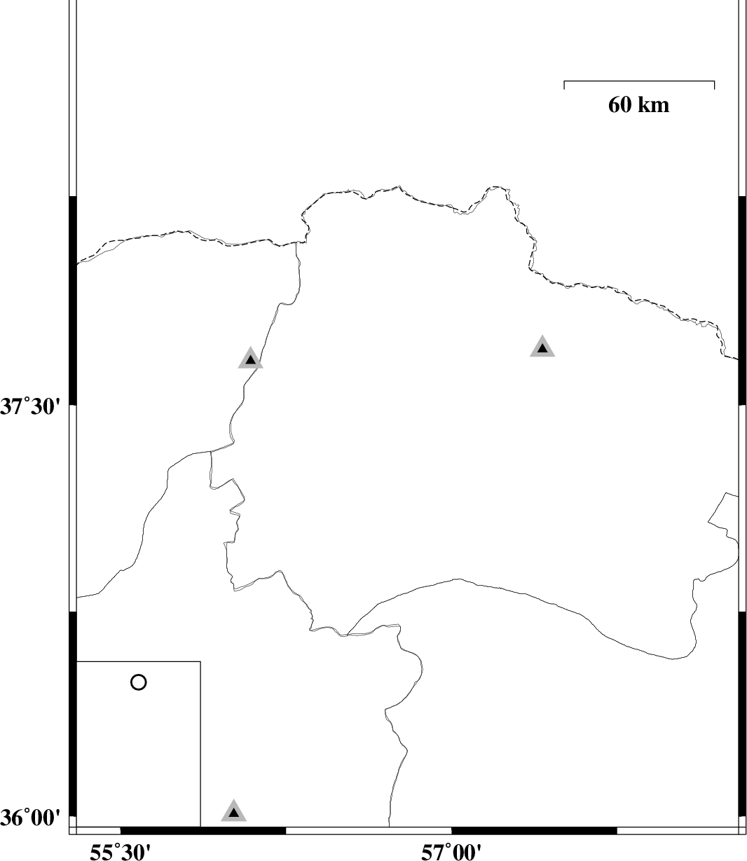 | 2010/01/26 | 07:43:47.8 | 11:13:47.8 | 37.46 | 56.8 | 14 | ML:2.8 | 15 km West of Ashkhaneh, Khorasan(north) Province |