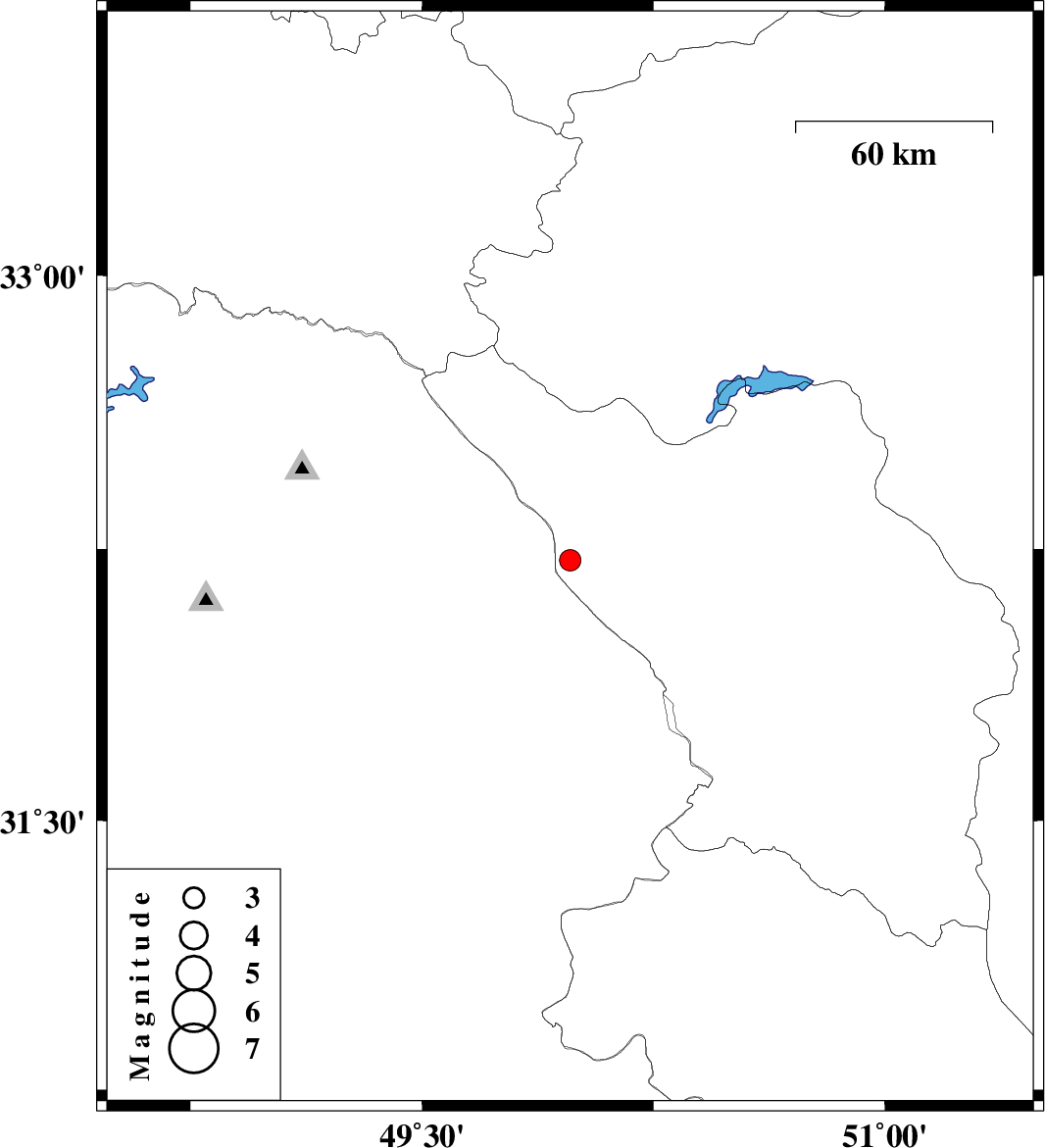 | 2010/01/28 | 13:35:42.1 | 17:05:42.1 | 32.22 | 49.98 | 44 | ML:3.1 | 30 km South-West of Chelgard, Chaharmahal Bakhtiari Province | ||