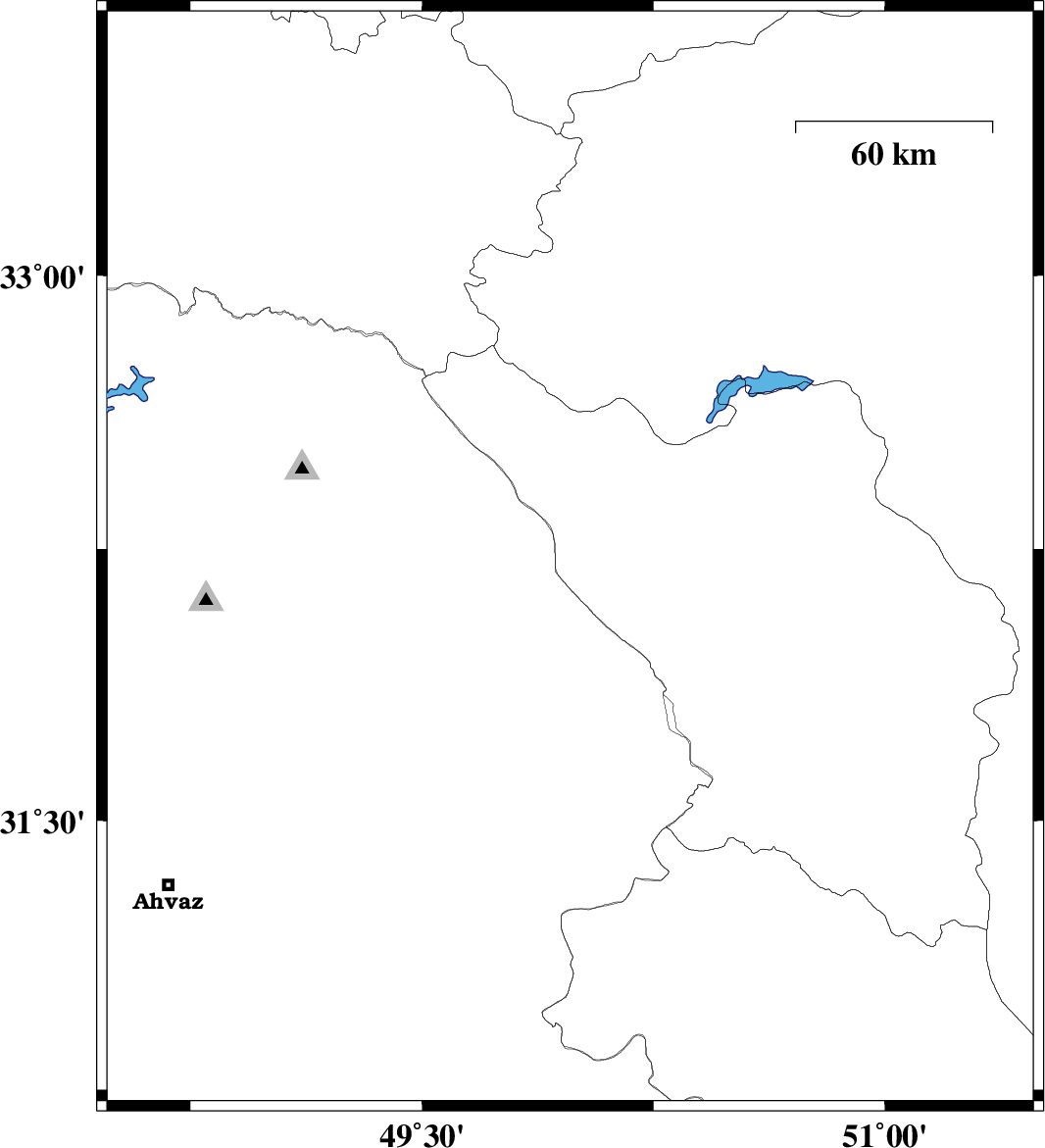 | 2010/01/21 | 10:30:57.1 | 14:00:57.1 | 30.85 | 48.84 | 15 | ML:3.2 | 29 km North-East of Shadegan, Khoozestan Province |