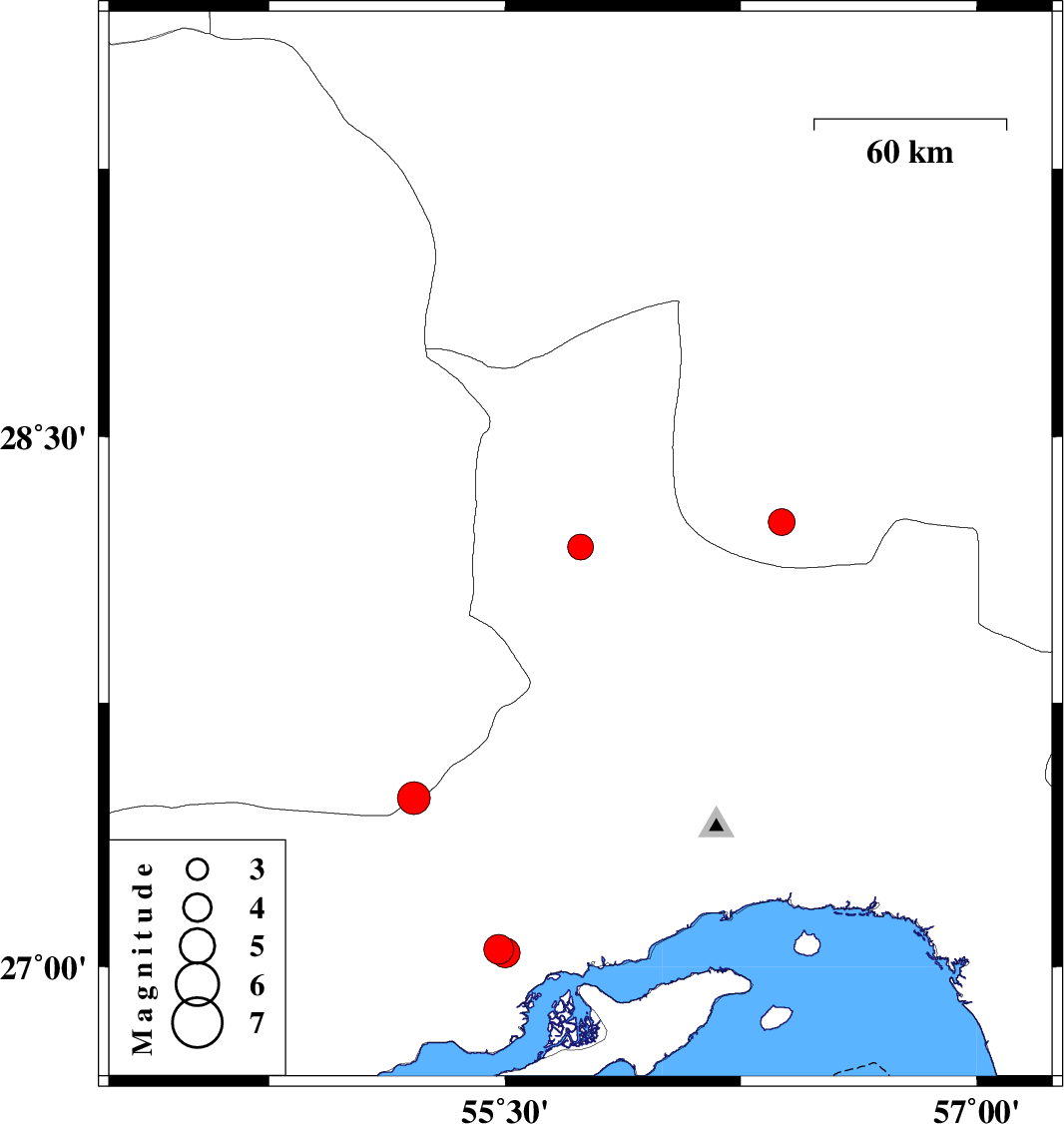 | 2010/01/10 | 15:20:33.2 | 18:50:33.2 | 27.04 | 55.5 | 17 | ML:4.2 | 76 km West of Qeshm, Hormozgan Province | ||