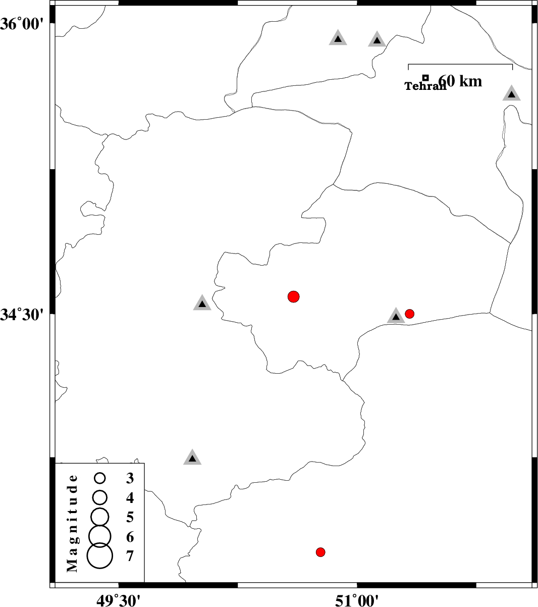 | 2010/01/16 | 05:48:06.5 | 09:18:06.5 | 34.5 | 51.33 | 6 | ML:2.6 | 45 km South-East of Qom, Qom Province | ||