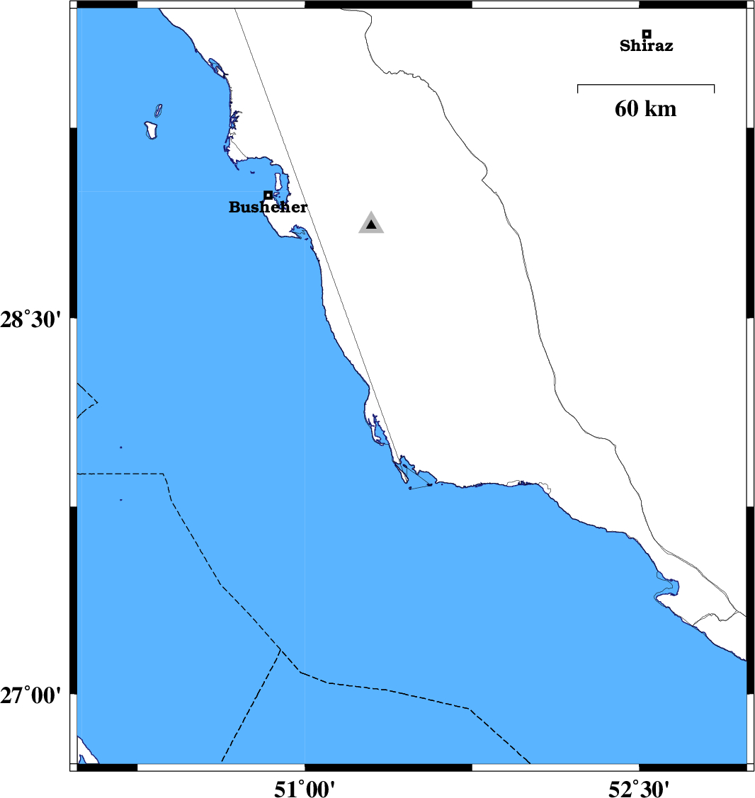 | 2010/01/19 | 18:49:13.1 | 22:19:13.1 | 29.65 | 51.34 | 14 | ML:4 | 30 km West of Kazerun, Fars Province | ||