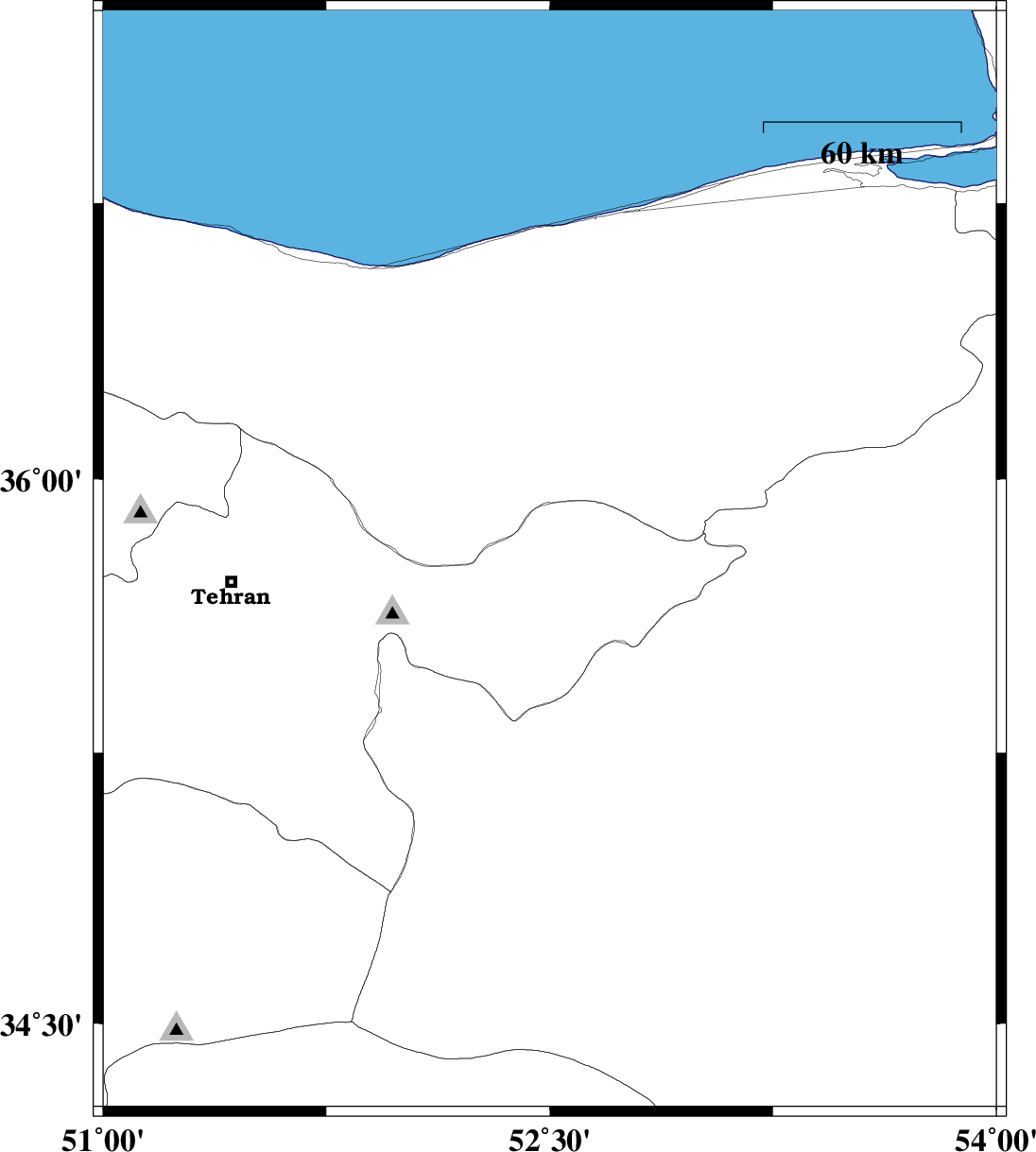 | 2010/01/30 | 10:25:43.6 | 13:55:43.6 | 35.98 | 53.38 | 39 | ML:2.8 | 32 km South-East of Pol-E-Sefid, Mazandaran Province | ||