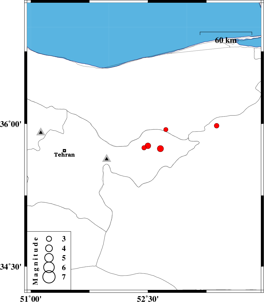 | 2010/01/26 | 01:52:25.7 | 05:22:25.7 | 35.74 | 52.66 | 14 | ML:3.7 | 9 km West of Firuzkuh, Tehran Province |