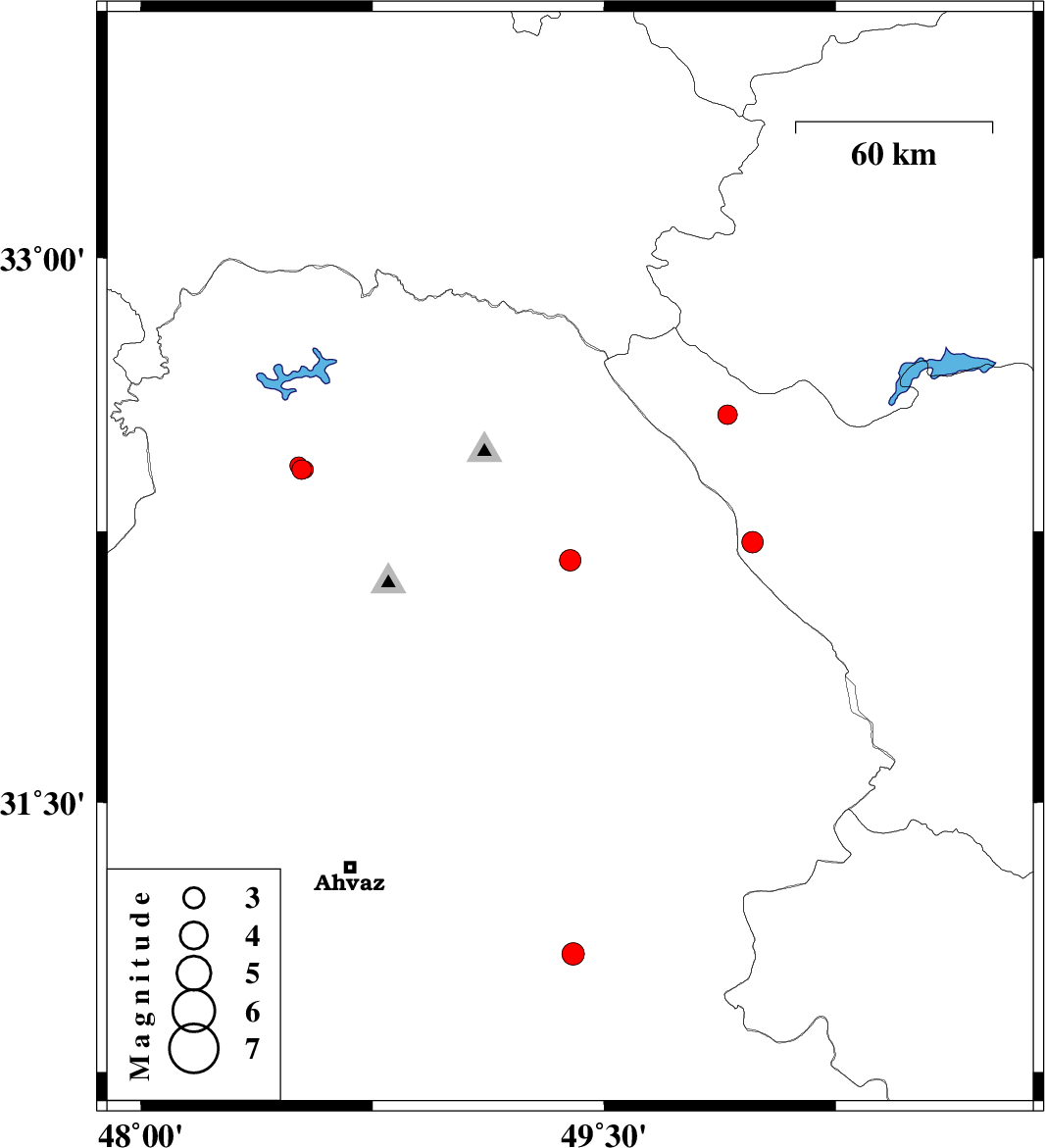 | 2010/01/30 | 11:56:46.3 | 15:26:46.3 | 31.08 | 49.4 | 37 | ML:3.3 | 29 km South-West of Ramhormoz, Khoozestan Province | ||