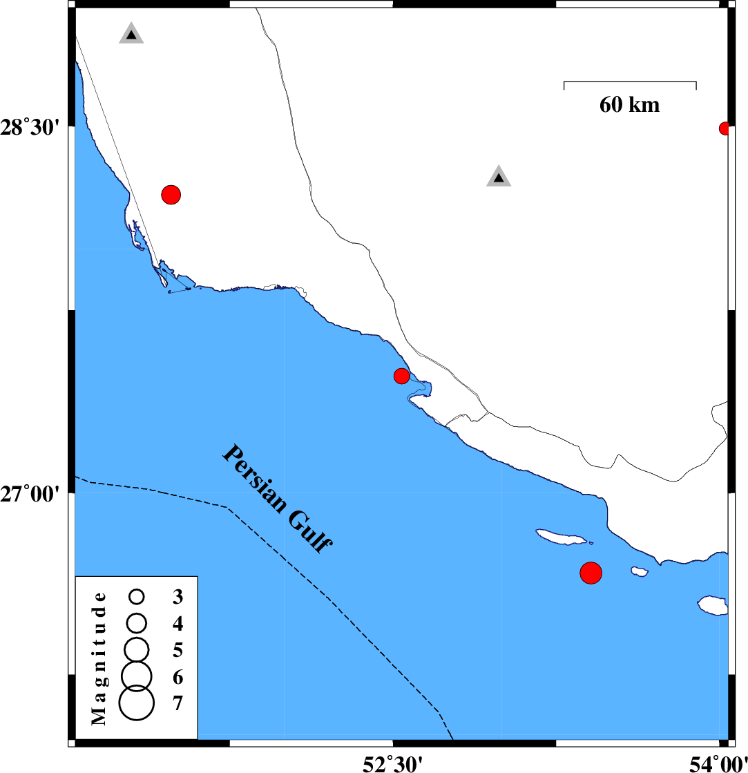 | 2010/02/04 | 23:40:08.6 | 03:10:08.6 | 27.48 | 52.54 | 20 | ML:3.3 | Persian Gulf, 35 km West of Mehr | ||