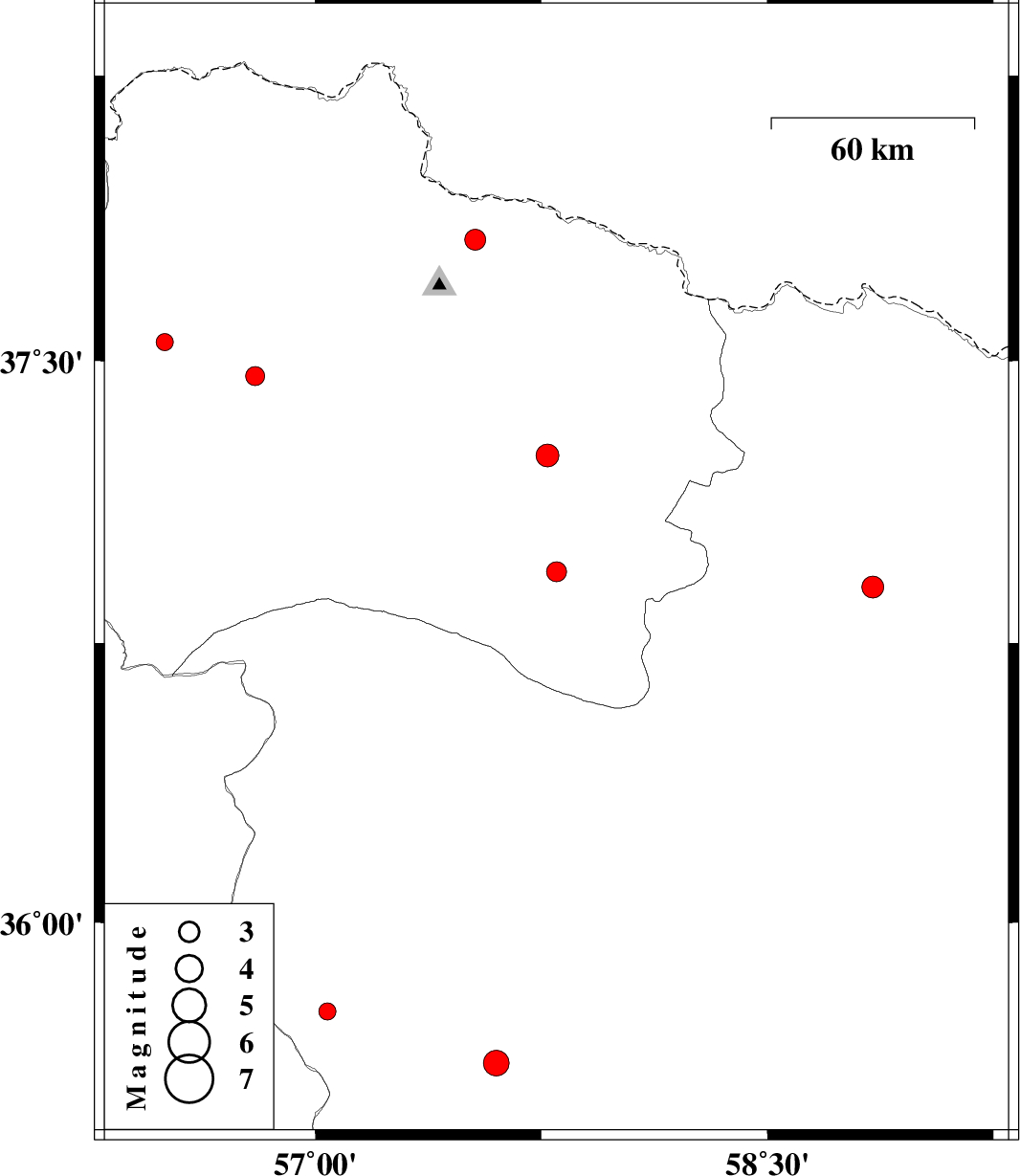 | 2010/01/31 | 03:10:39.3 | 06:40:39.3 | 37.82 | 57.53 | 0 | ML:3.1 | 42 km North-East of Bojnurd, Khorasan(north) Province | ||