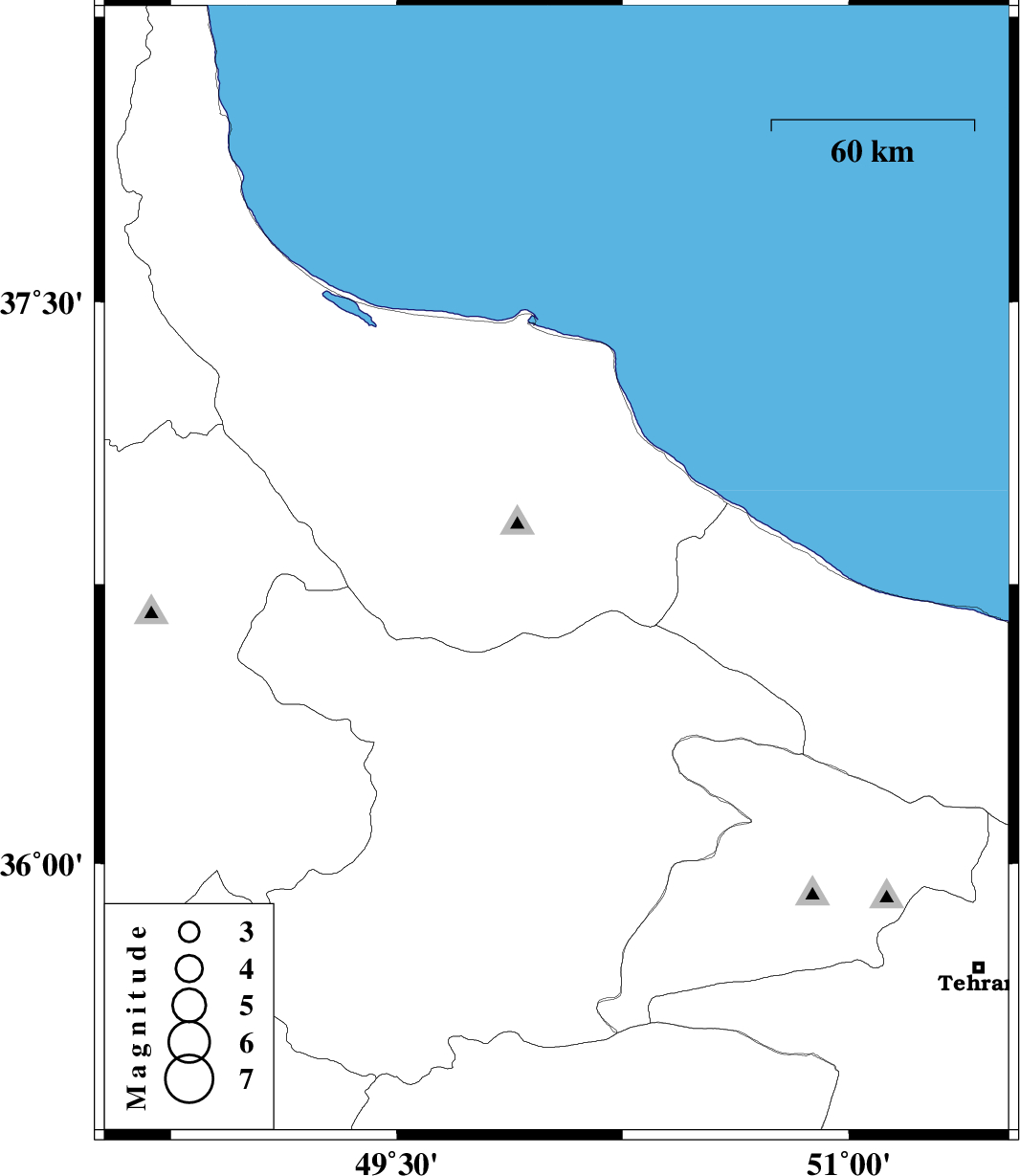 | 2010/02/06 | 18:17:33.8 | 21:47:33.8 | 36.78 | 50.03 | 14 | ML:2.6 | 36 km South-West of Amlash, Gilan Province |