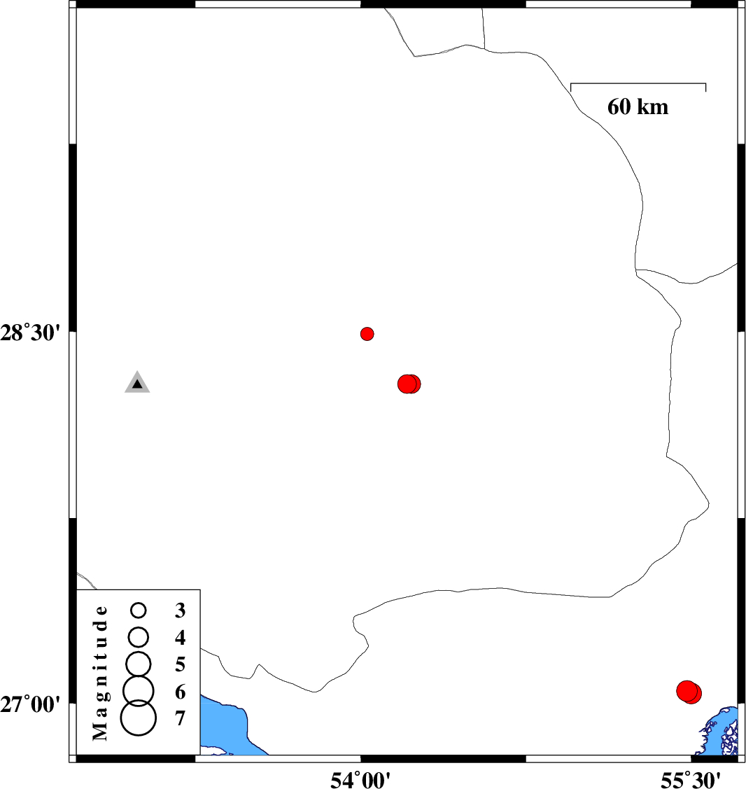| 2010/01/10 | 15:20:33.2 | 18:50:33.2 | 27.04 | 55.5 | 17 | ML:4.2 | 76 km West of Qeshm, Hormozgan Province |