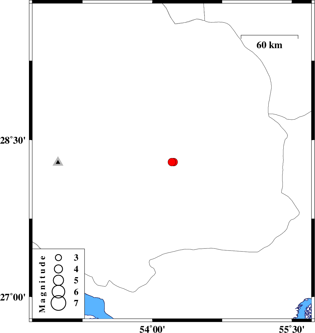 | 2010/02/08 | 21:20:54.6 | 00:50:54.6 | 28.29 | 54.21 | 15 | ML:3.8 | 59 km South-West of Darab, Fars Province | ||