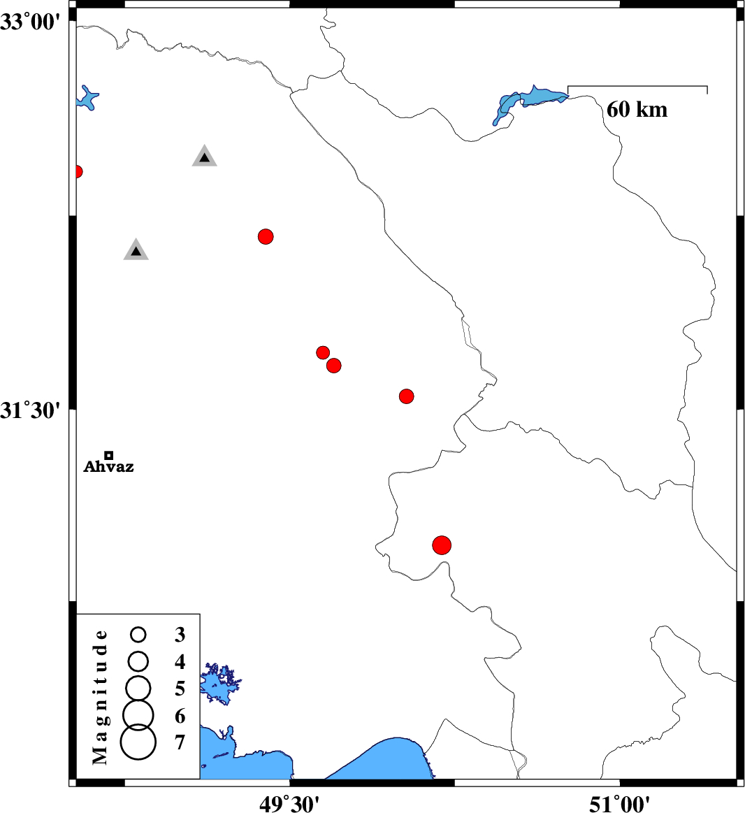 | 2010/02/03 | 16:49:34.4 | 20:19:34.4 | 32.17 | 49.39 | 17 | ML:3.1 | 27 km North of Masjed Soleyman, Khoozestan Province | ||