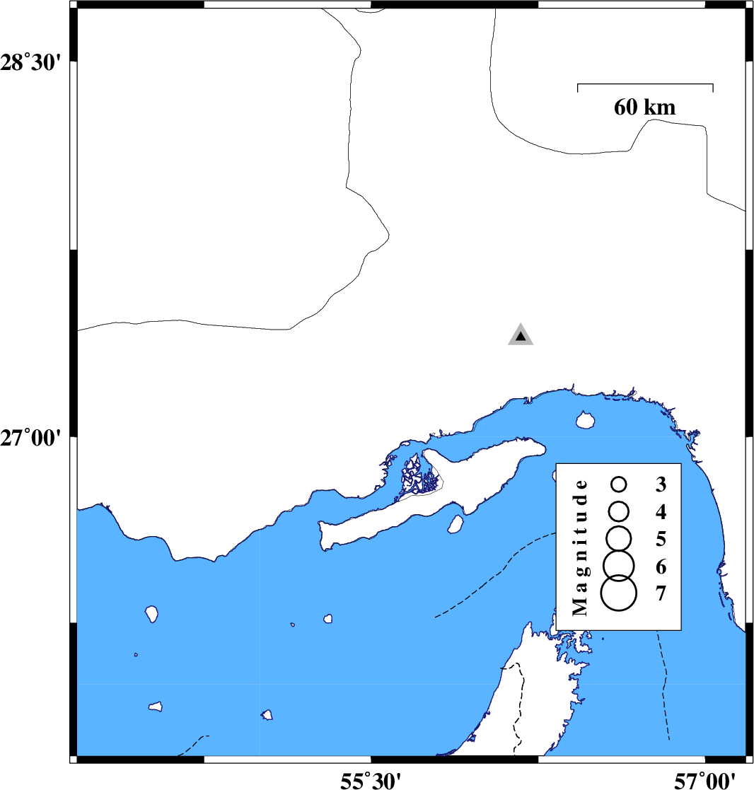 | 2010/02/09 | 01:12:50.7 | 04:42:50.7 | 27.21 | 55.68 | 14 | ML:2.5 | 59 km West of Bandar-e abbas, Hormozgan Province | ||