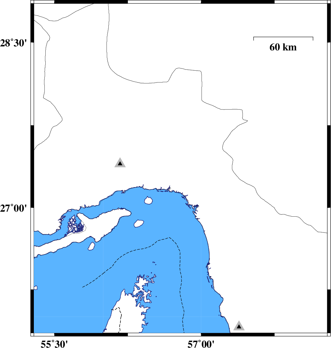 | 2010/02/09 | 01:12:50.7 | 04:42:50.7 | 27.21 | 55.68 | 14 | ML:2.5 | 59 km West of Bandar-e abbas, Hormozgan Province | ||
