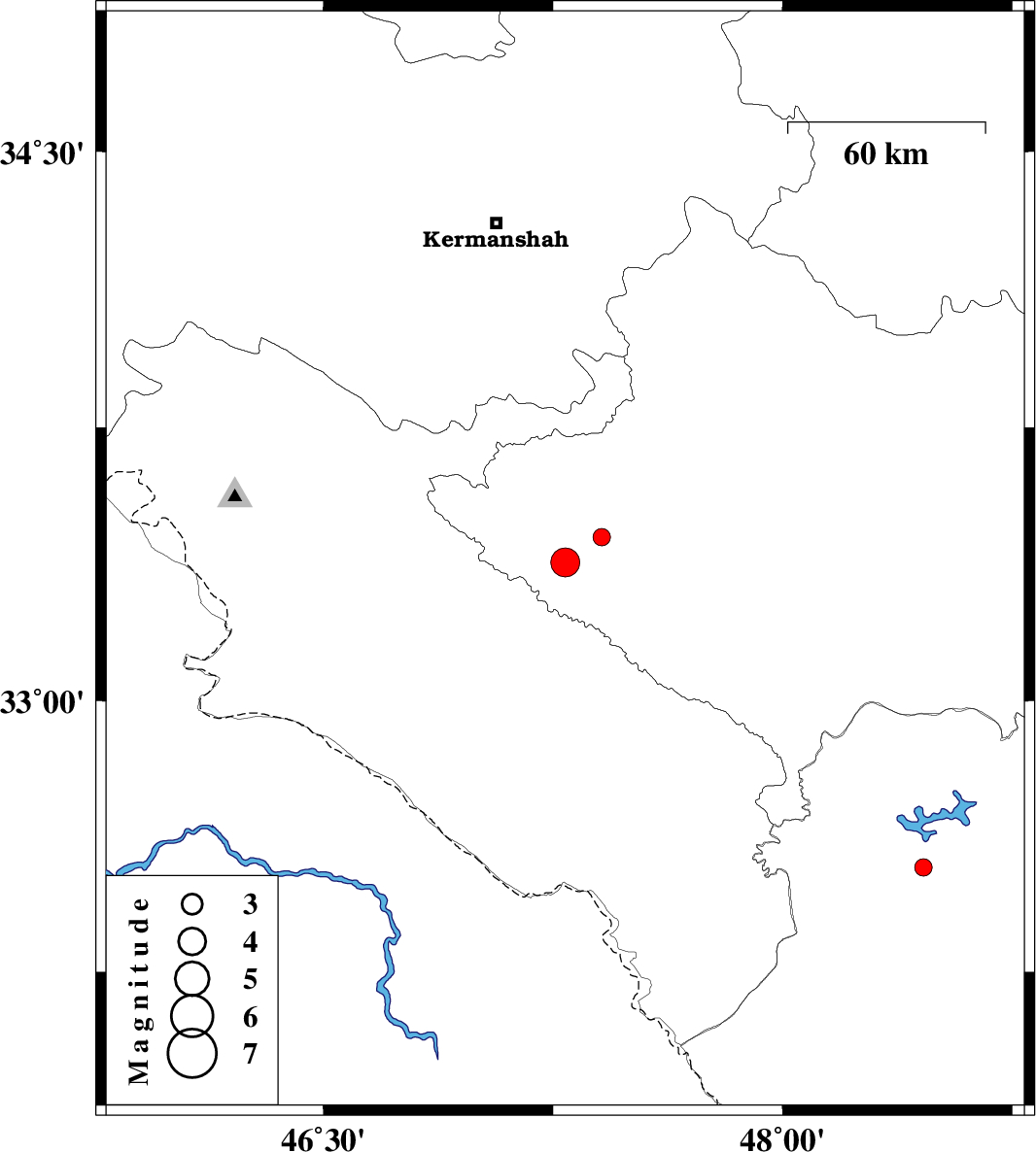 | 2010/02/11 | 16:29:42.4 | 19:59:42.4 | 33.38 | 47.29 | 15 | ML:4.3 | 28 km North of Darreh Shahr, Ilam Province |